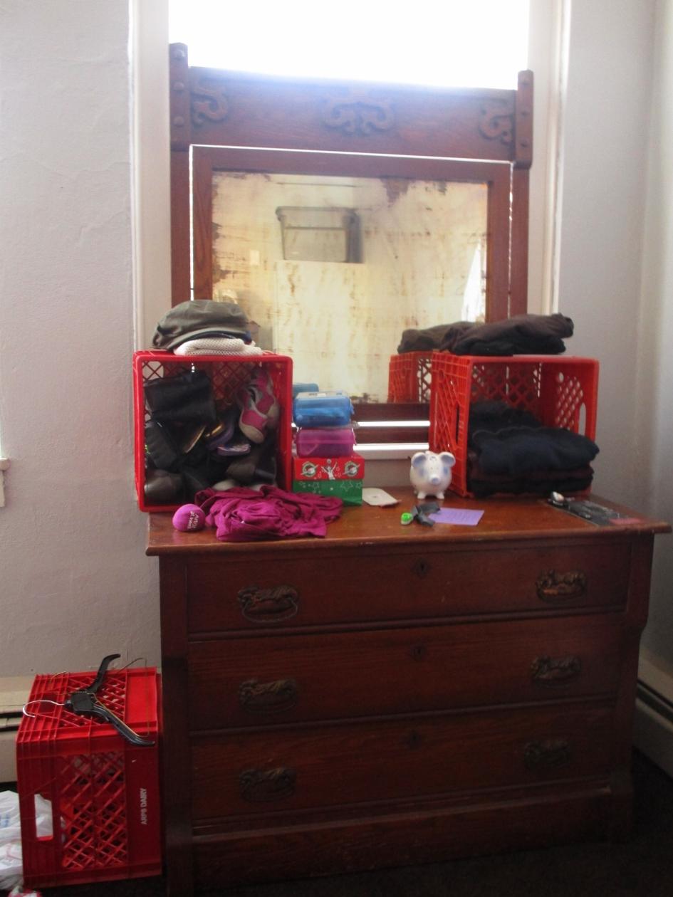 Locking drawers, and Mirror that attaches to back.