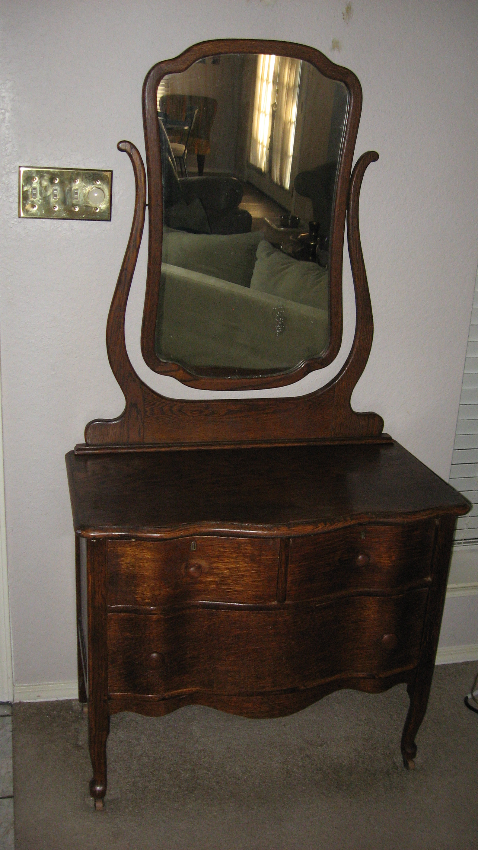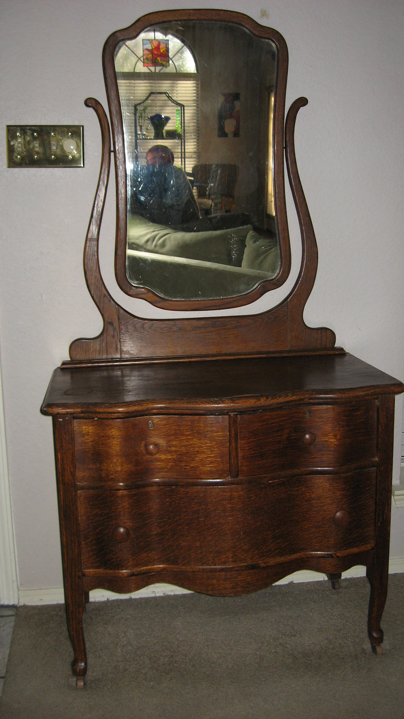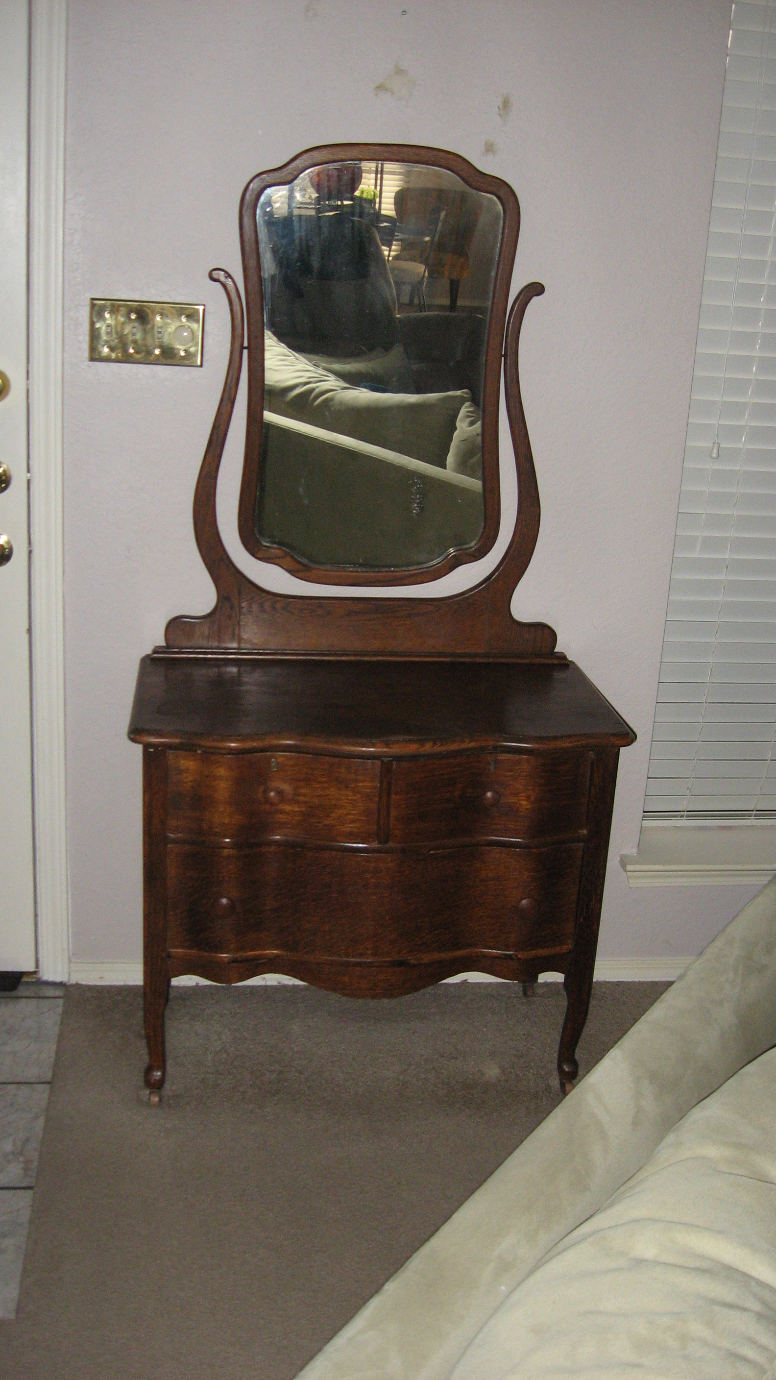 It's a three dresser table with mirror (the mirror has a stamp on the back that says NMP CO. Sept. 30 1924 Bloomington IND.) and the back of dresser has a 4525 number on it - but that is only identifing marks I can find.