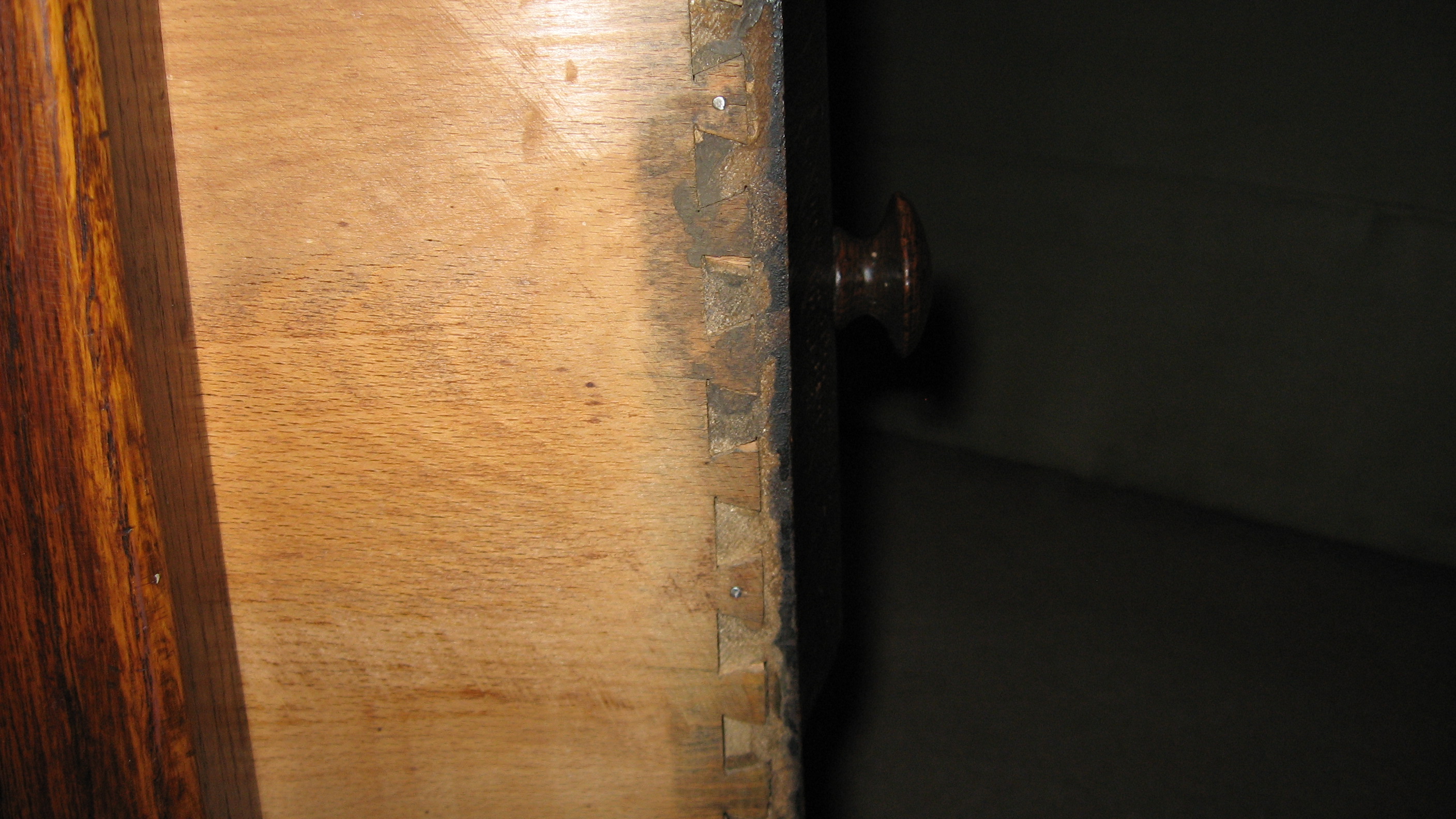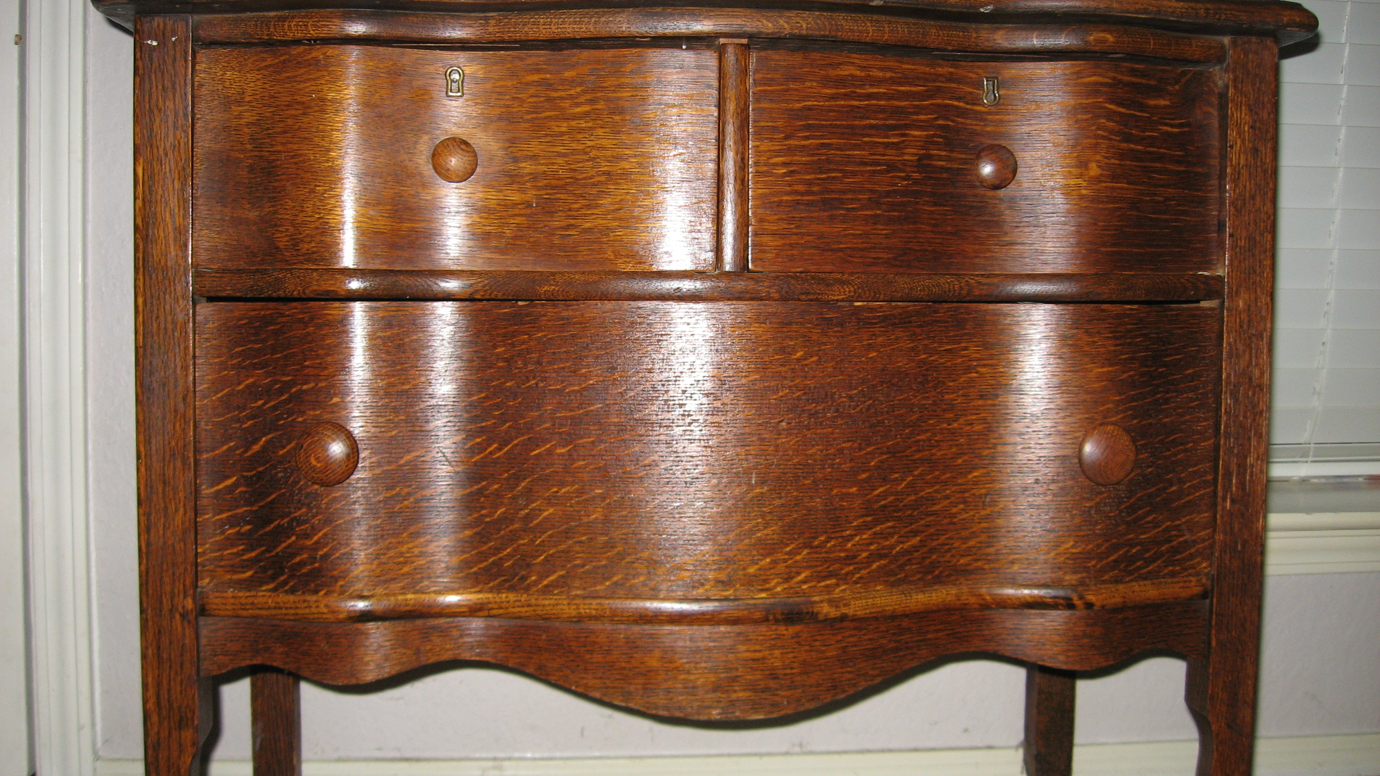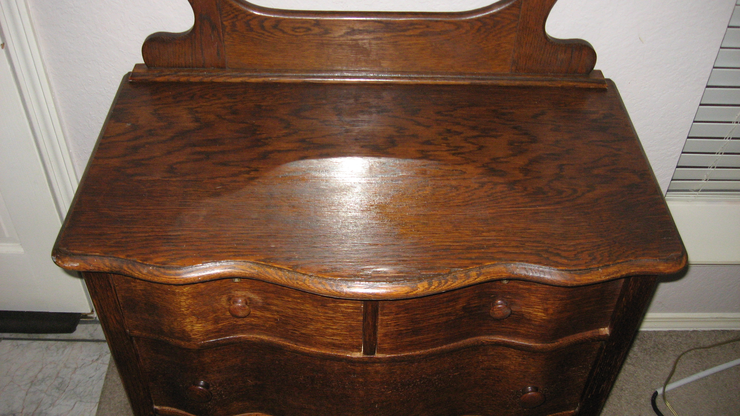 It's a three dresser table with mirror (the mirror has a stamp on the back that says NMP CO. Sept. 30 1924 Bloomington IND.) and the back of dresser has a 4525 number on it - but that is only identifing marks I can find.