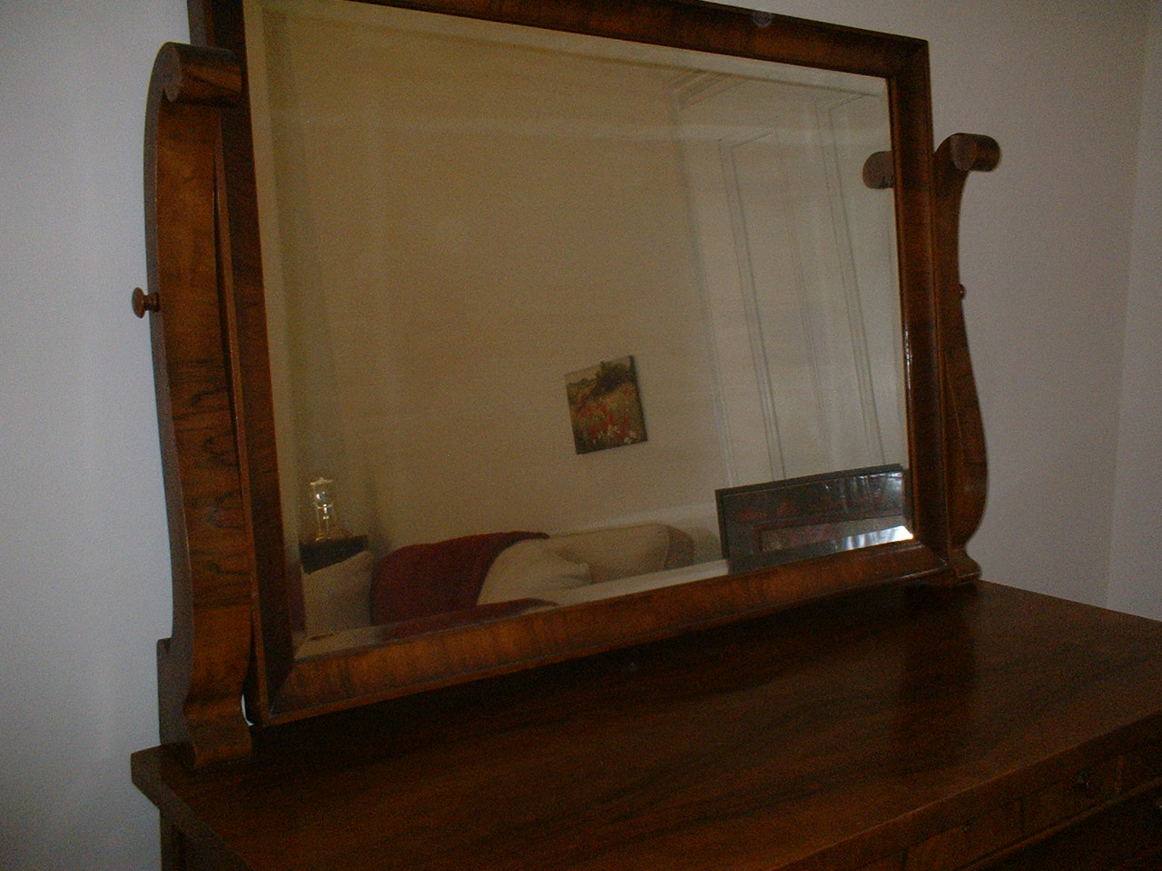 Your dresser is in the "Empire Revival" style.The orignal American Empire style had it peak period of popularity 1815-30 and the Revival pieces like this one at the turn of the 19th Century, 1895-1910. Demand for dressers in this style currently is very modest, it peaked back in the later 1980's and has declined since that time. Currently comparable pieces to yours now sell at auction for less than $250.00.