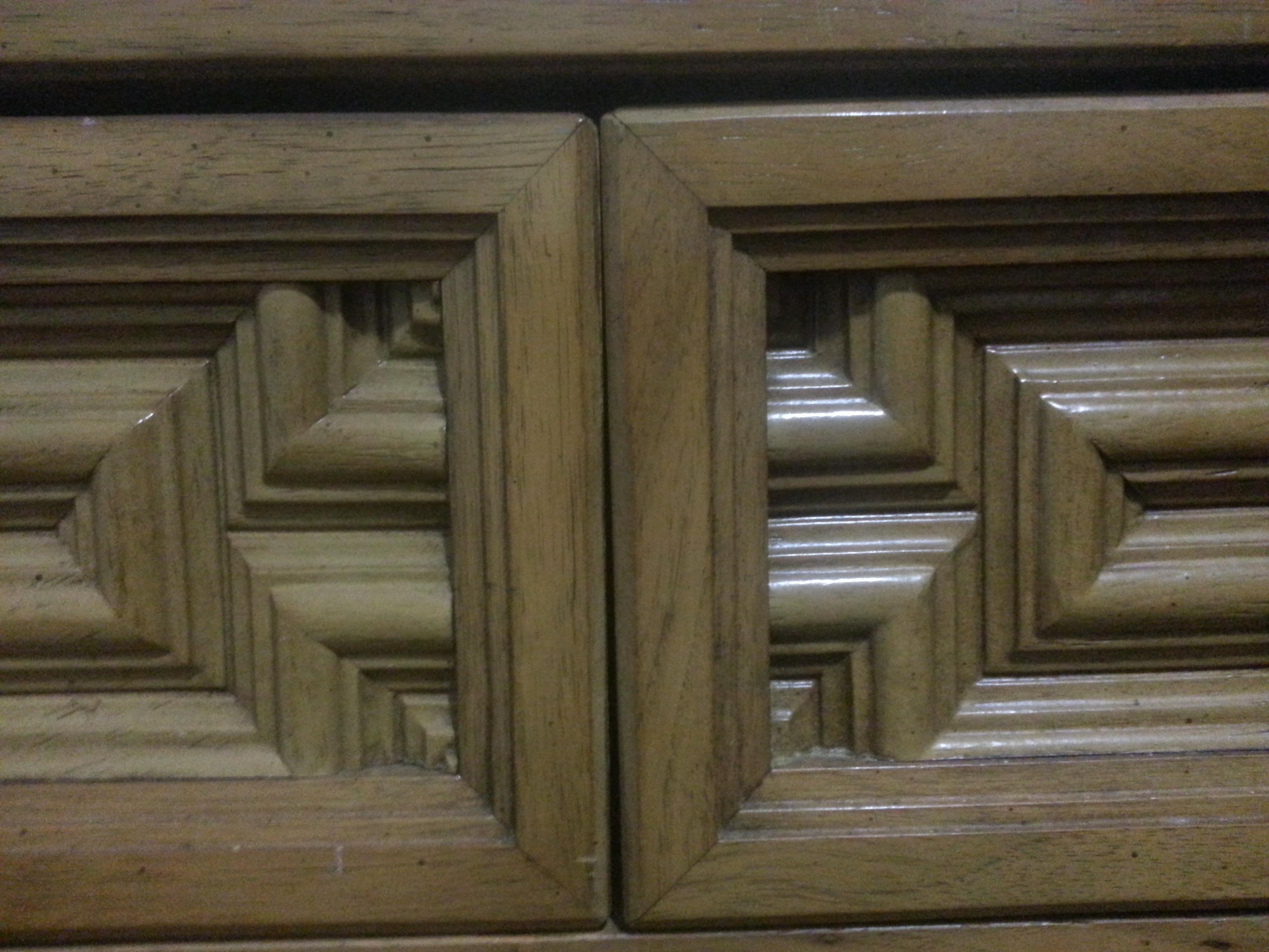 Dresser that has mirror that attaches to it. Dresser has 58 in width, 30 inch height,19 in depth. Jefferson is stamped on one of the drawers. The second picture is a close up of the top drawers, which are different than the bottom two rows. The dresser is extremely heavy. I was told it is prairie style. I would like like to know any information about the piece because I do not know anything about the furniture, so basic information pertaining to style/age/ect. would be helpful.