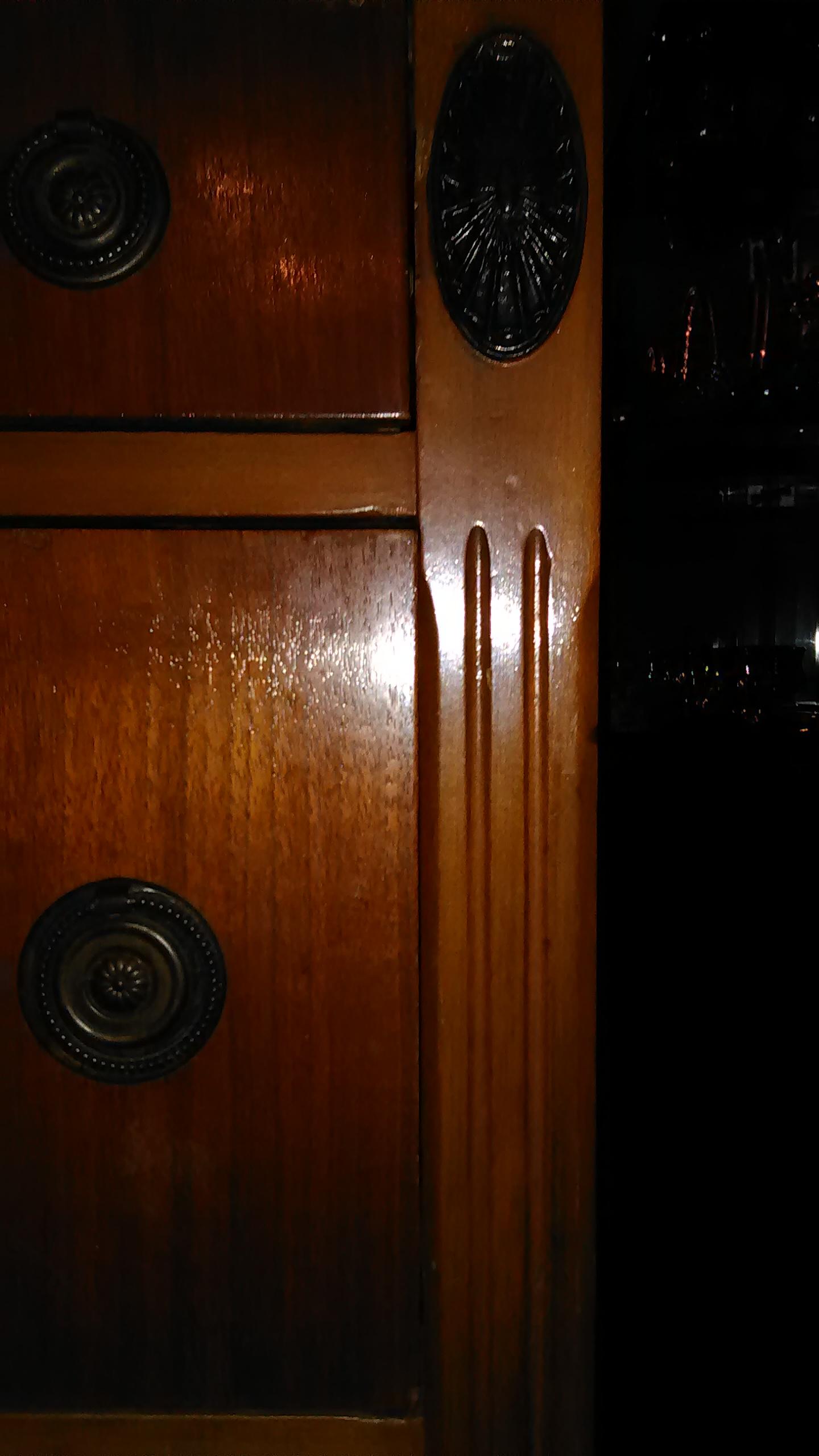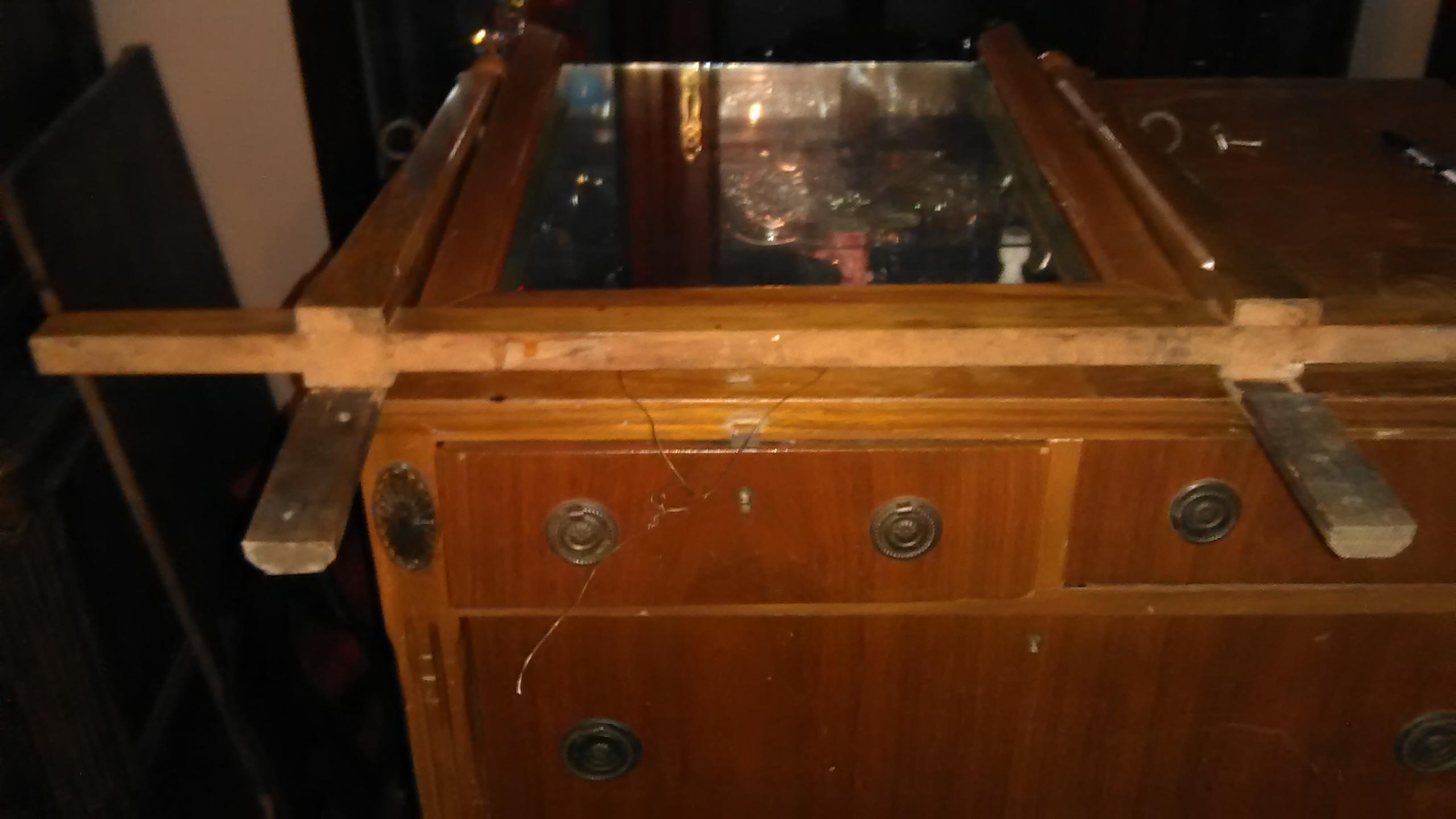 I would like to know the worth if any. From what I can tell everything is original, down to the wheels which I would love to know what theyre made from, on the top there is damage from what appears to be a candle burn. I do have the original mirror just didn't want to break.