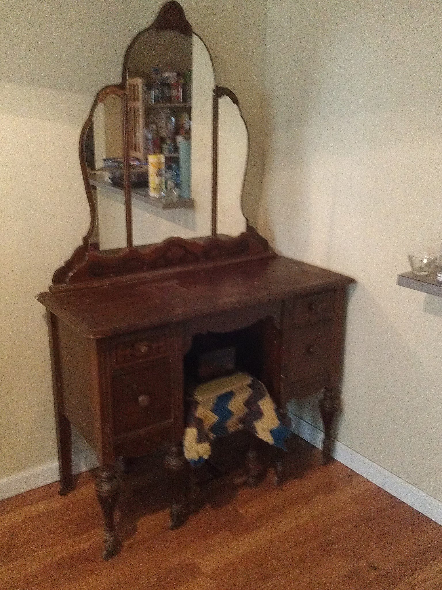 History This was a dressing table my grandfather bought as a wedding gift for my grandmother. they lived in North Dakota at the time. They were married in the late 1800's