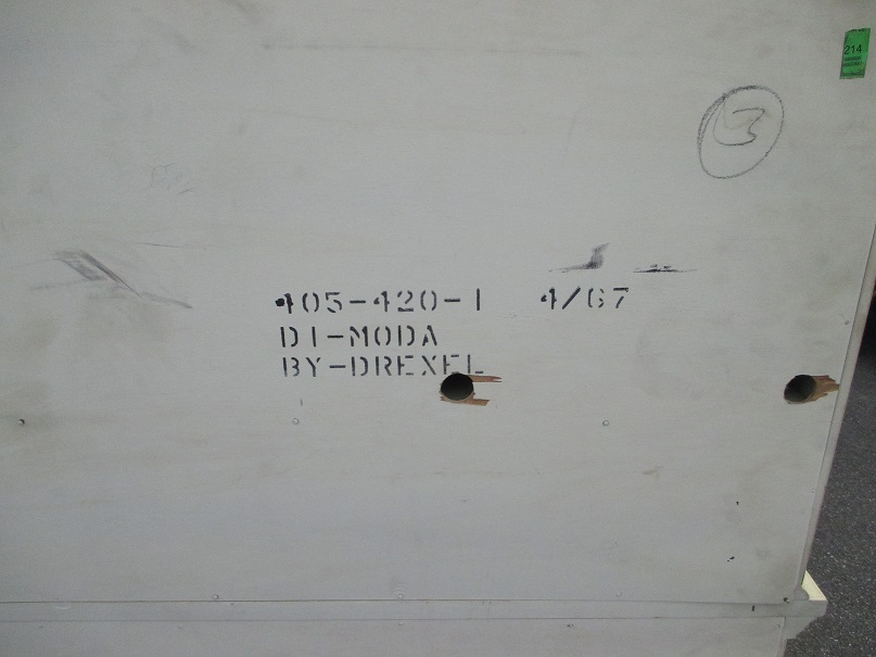 It is like this furniture does not exist! I cannot find any information on the Drexel Di Moda line of furniture. I have searched google, 6 different search engines, ebay, drexel history, tried to find catalogs/price guides/anything. Can't even find pictures of even closely similar furniture. Please help! I am trying to find some kind of value range for this furniture. I am also trying to determine if they have the original paint or have been re-painted. It is really bizzare that not a single Di Moda piece is listed on ebay. Hey maybe that will be good when I list them for sale. Is this line really rare or something? I see other drexel pieces from the same time period and they are listed at $800-$1500 each. I sent pictures to a local antique store guy I know and he said they would be worth only a couple hundred each. That just does not seem right in comparrison to the value of the other Drexel styles from that time period. He said it was the right time period but the style and paint was not popular now?????? They seem pretty neo-classic modern contemporary to me, figured collectors would dig them, but what do I know, just what I like. Would really love to keep them if I had space in my house, plus the weight and length getting up stairs to the bedroom is impossible. Anyway...any info would be fantastic. Thank you in advance.