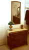 The handles have some rusting and the top of the dresser has some scratching or denting about 2 inches long and 1 inch in width but no loss in color or cracking. The back of the nightstand was cut about 1" to allow for wiring. The pieces look great aside from those things.