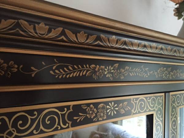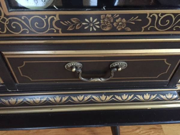 This is just the top of the hutch. Chocolate brown with gold trim and artwork. Five draws and full top down lighting.