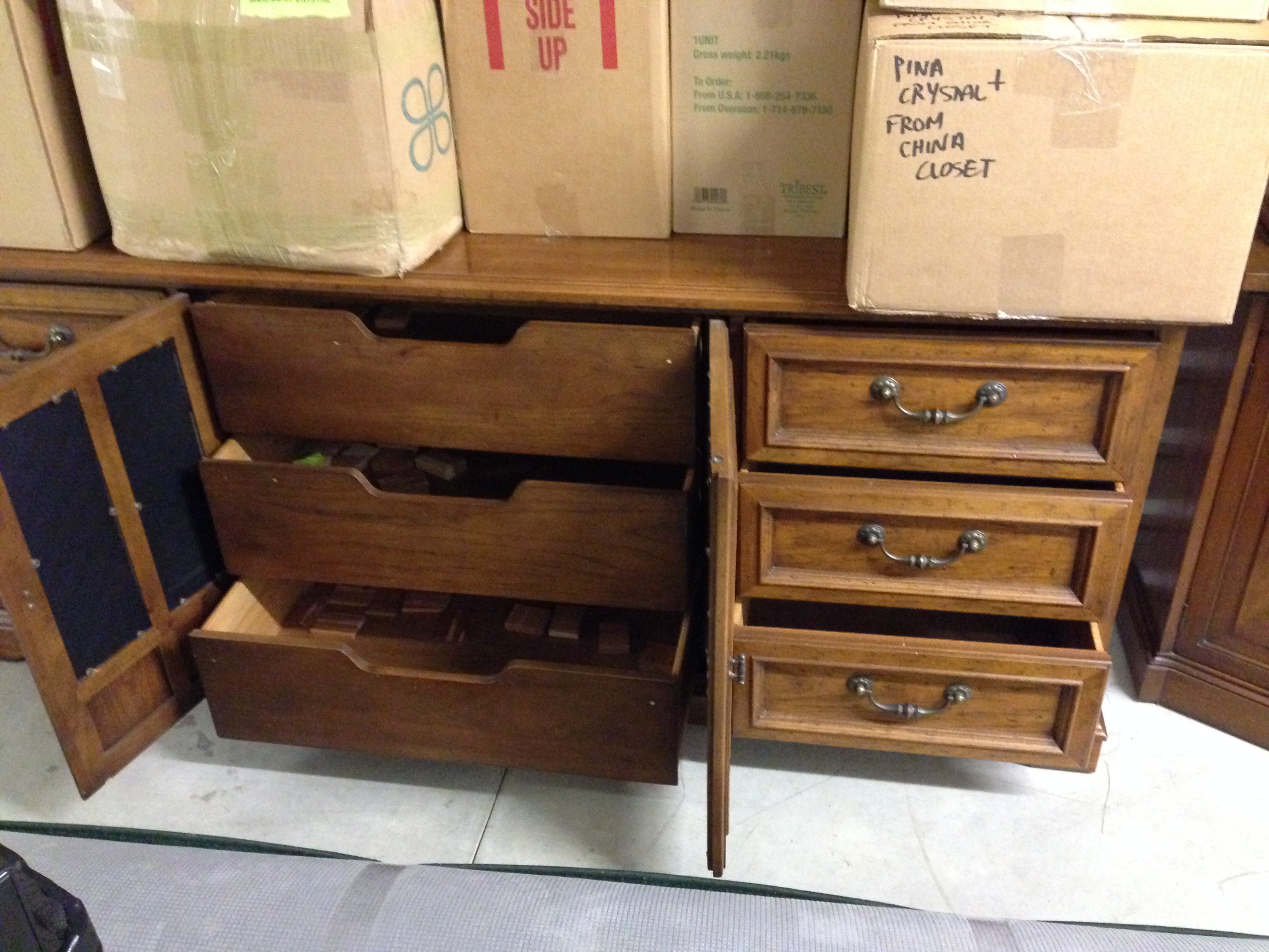 These are original, solid wood, dovetailed, center guided drawers.  The night stands have been sold, but I still have the matching bureau and chest of drawers and am looking to determine a reasonable value.