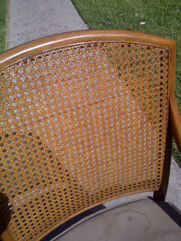 - 4 Cane back chairs (2 with arms, 2 without), brushed leather (I think) seat cushions