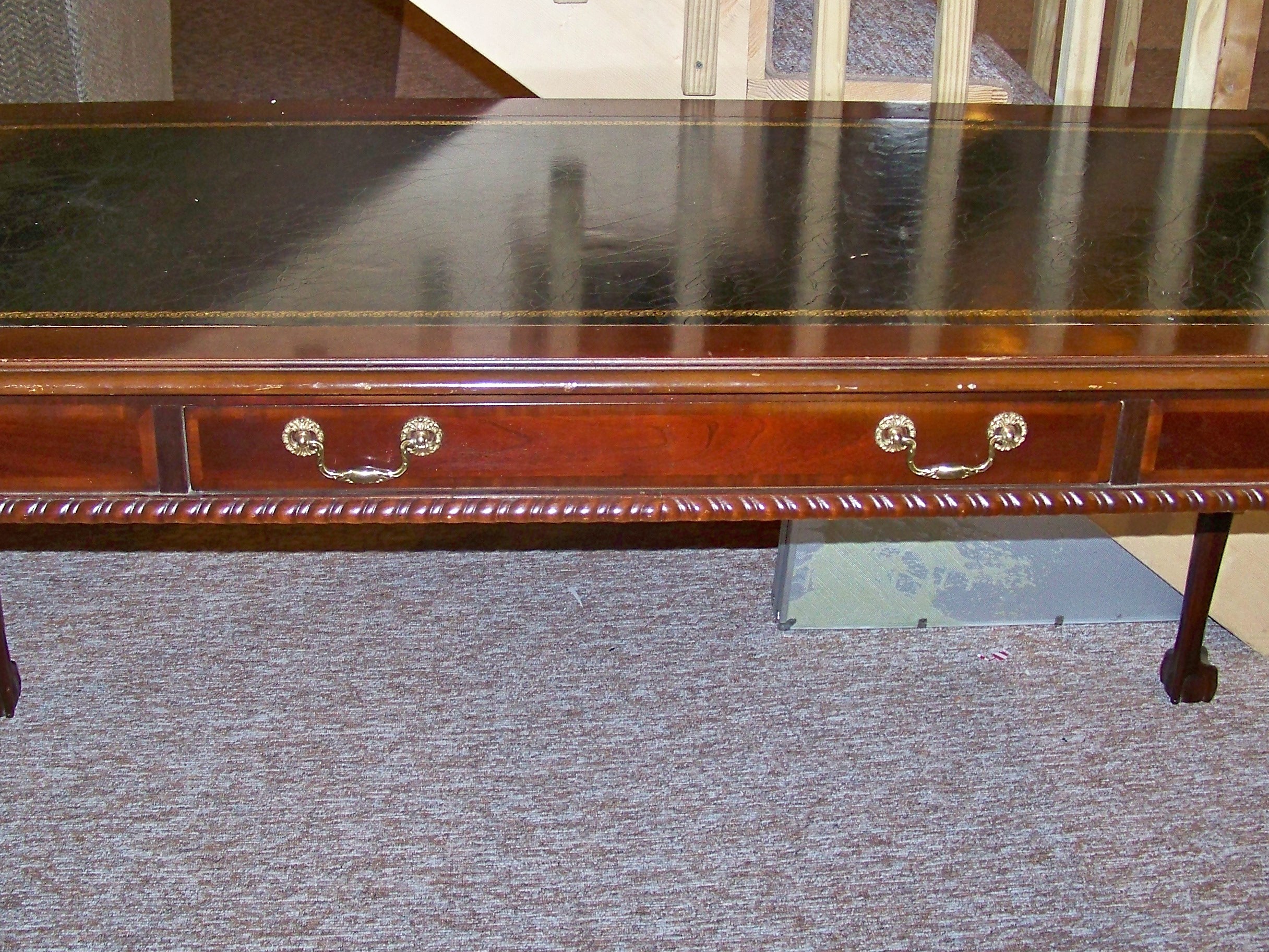 this is a libary table (I think) that I bought at auction.  Would like to sell it.  It has a leather top and is in great condition.  I believe it is mahagony.  not much else I know.  Can anyone tell me the value?