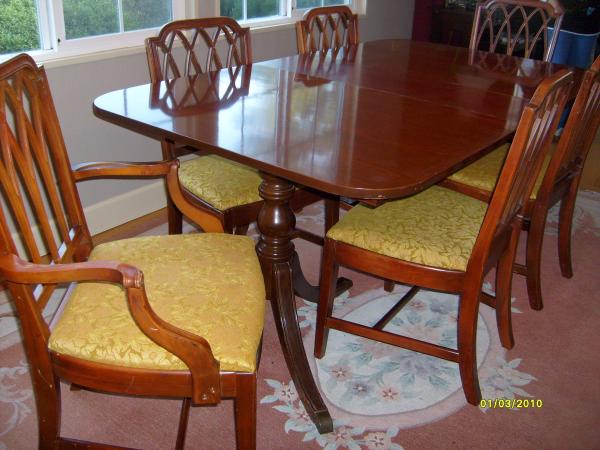 This Drexel New Travis Court Collection Dining Room set was my grandmothers. It consists of the table, chairs, 3 leaves, 3 pads, a buffet, and a china cabinet. All is in good condition. I would like to sell the set.