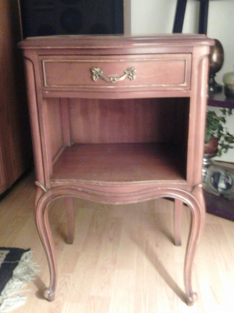 It is a Drexel piece. Either a night stand or an end table. I'm told by Drexel that it is from the 1950s. It has the stamp 1875-1 and under that it has 953.