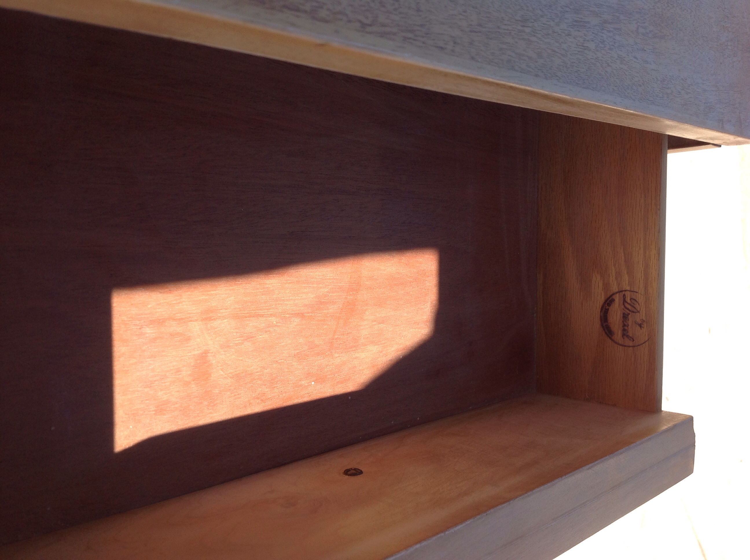 I found this at a thrift store. It is in excellent condition. Minimal paint stripping on top but other than that no dings or scratches. Drawer slides easily.