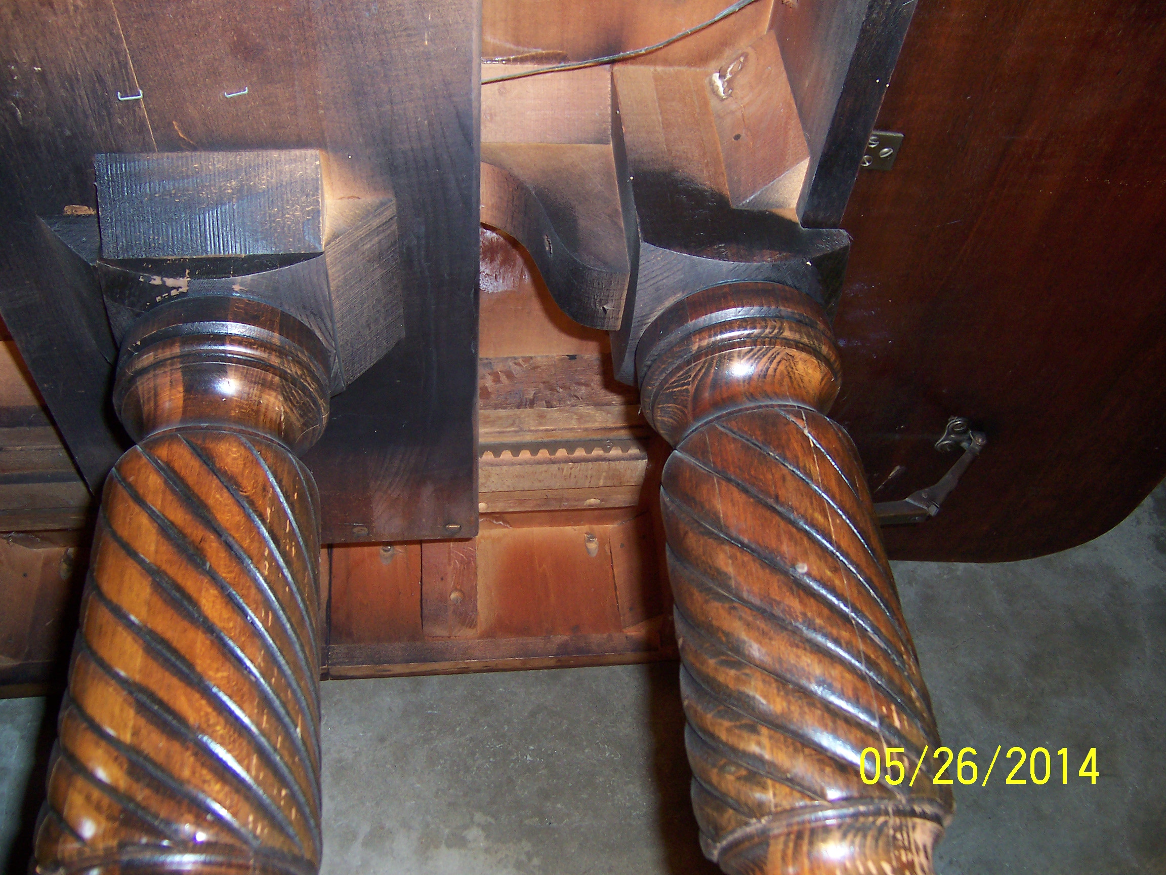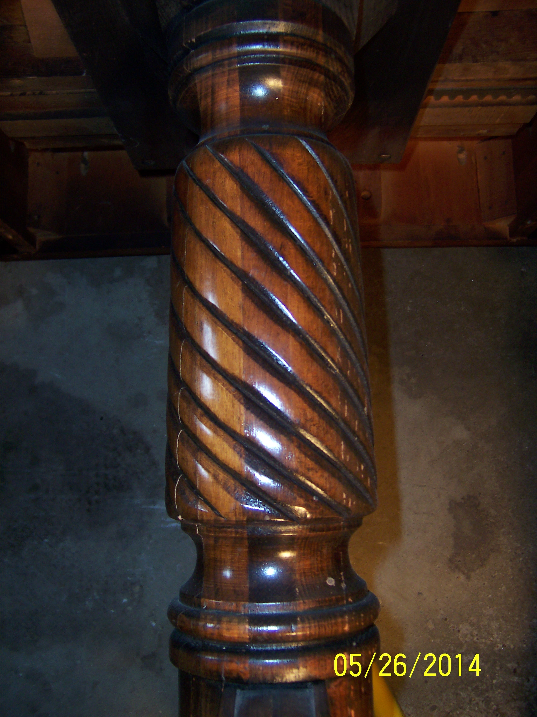 Attached are detail pictures of a dining room table that was water damaged from storage. We think that it may be a Duncan Phyfe drop leaf table that extends with 3 removable leafs and 2 drop down leafs, to seat 16 people. The table is still structurally sound. The removable leafs are warped. The top of the table and top of the removable leafs are delaminated on top layer. The drop down leafs are in good condition except for finish. We are looking for appraisal of actual value before damage for insurance coverage.