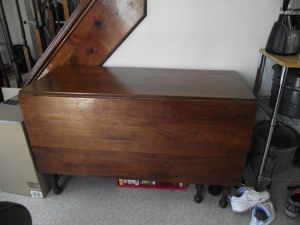Lovely drop leaf table. Unsure of the wood, but it is extremely heavy. Carved legs swing out on 2 sides to triple the space to seat at least 6 comfortably. Purchased in Yorkshire England in the 1970s. Not sure when it was made, but guesstimate 1870s.
