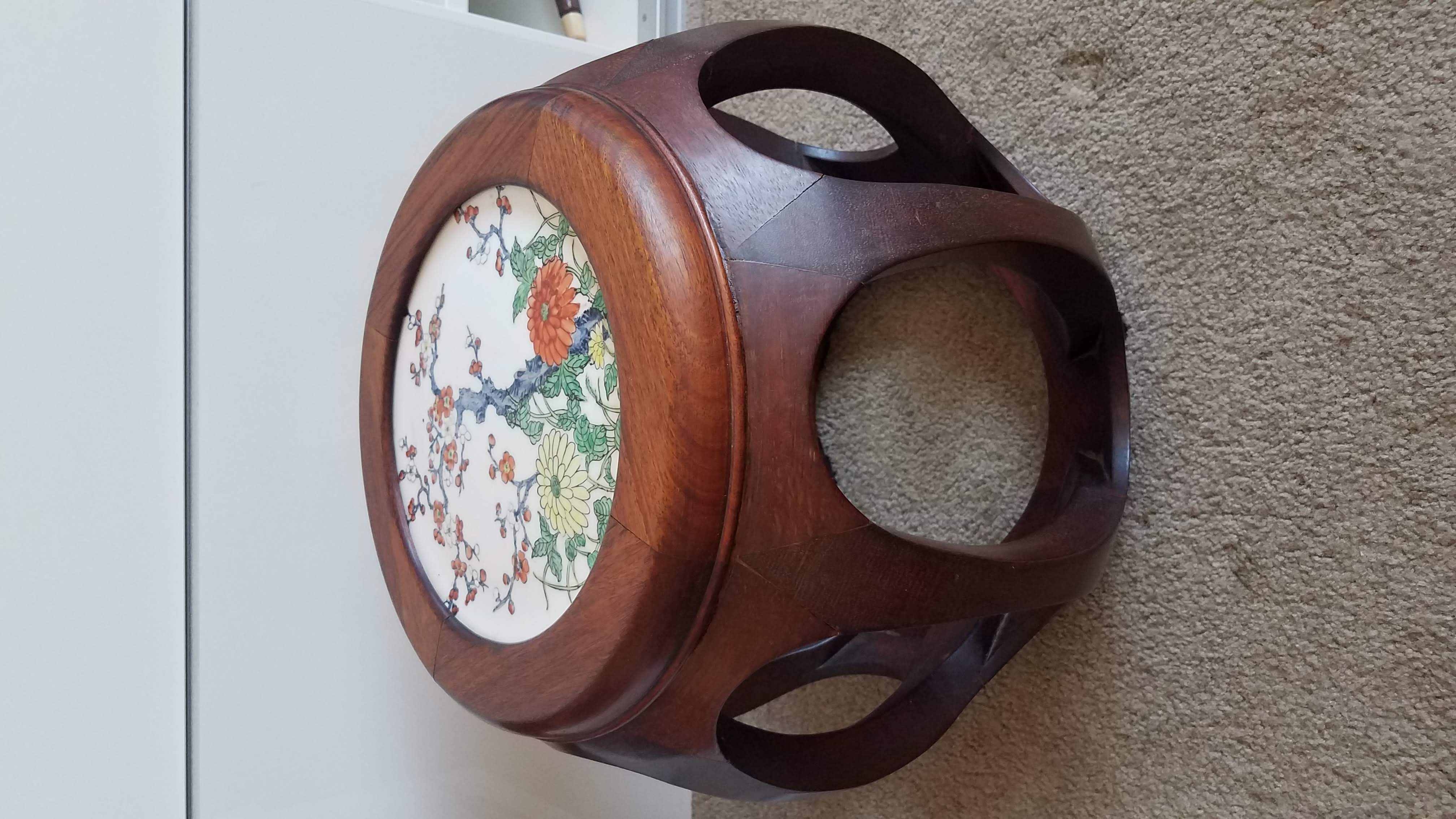 I picked up this stool at an estate sale and would love to know more about it. I did find a partial mark on the bottom of the insert, but could not find any information.