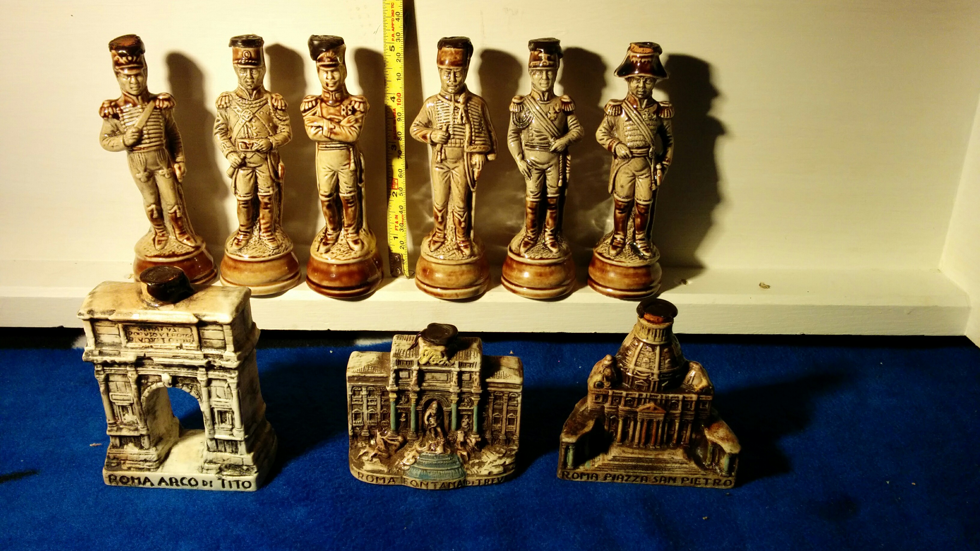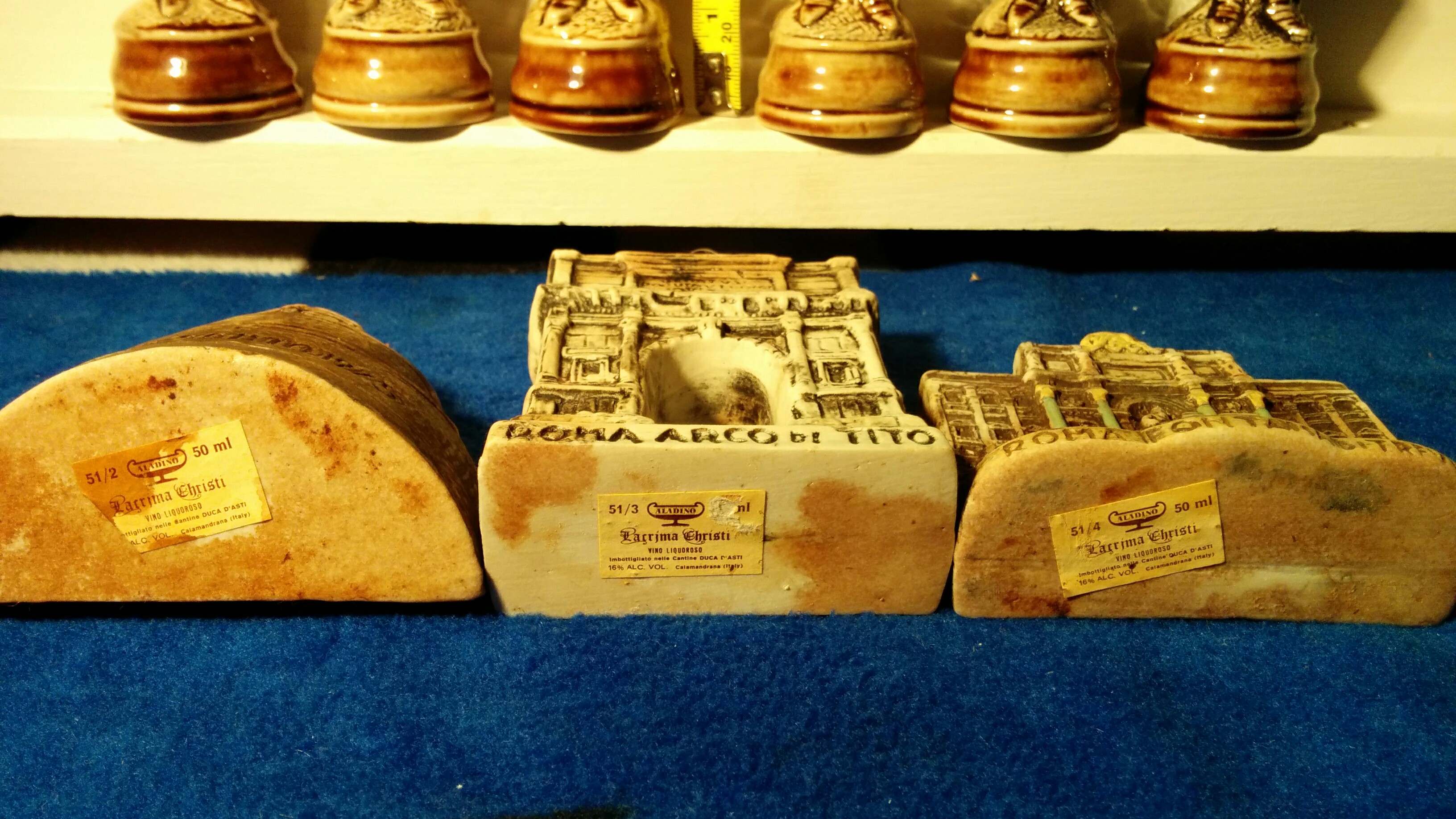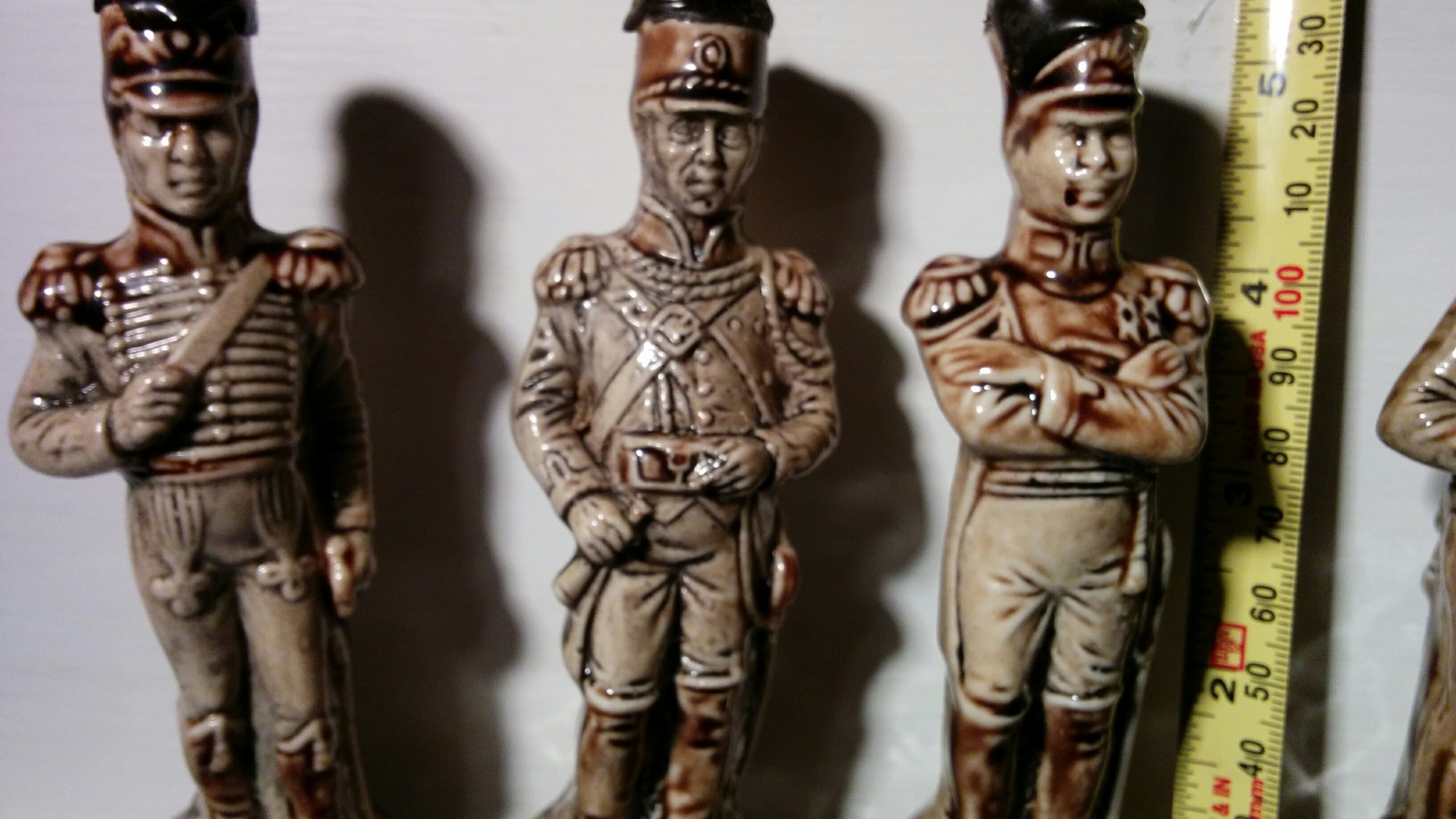 I don't know much about these gentleman. Looks like part of a collector set. The soldiers all have different uniforms & faces. These are full & sealed liquor miniatures. The soldiers hats are cork & wax sealed toppers. According to the bottom label they contain a wine liqueur 16% alcohol.Excellant condition & have never seen a photo on the net.