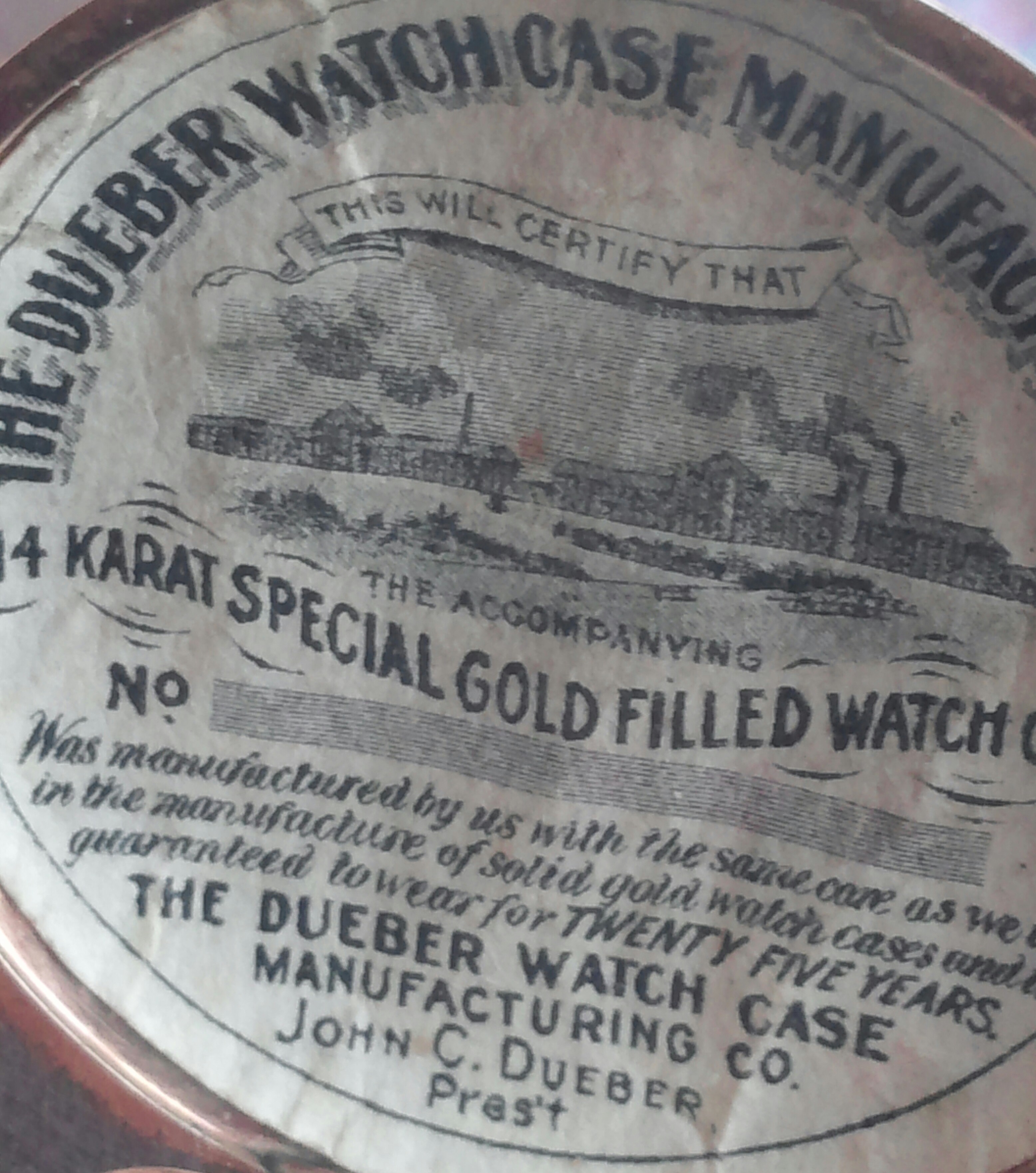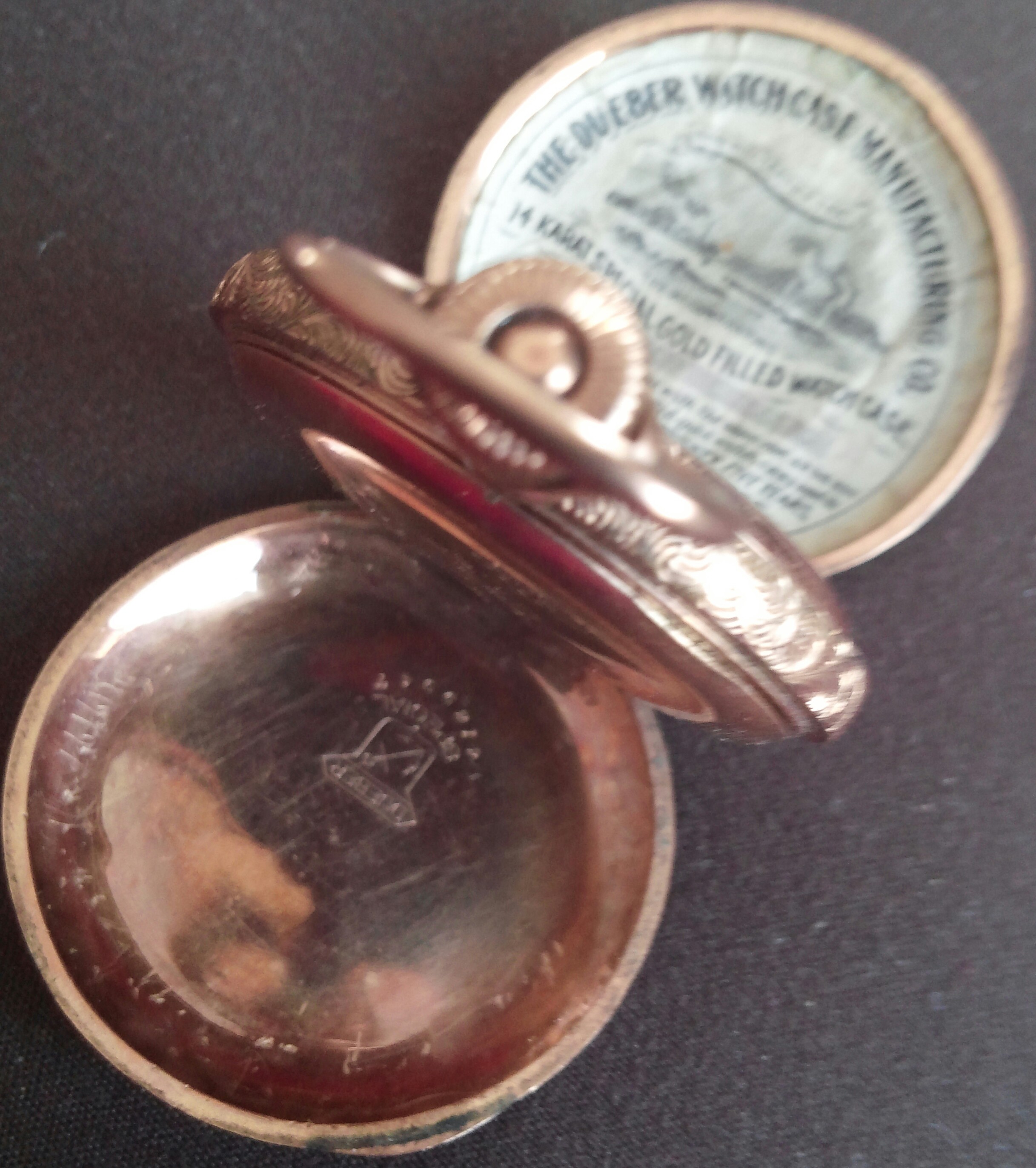 As on pics engraved with name and 1900, Dueber mark and number. Outside ornately etched
