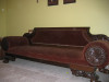 Description Can email photos if requested. 2 Chairs (1 white the other gold) - mint condition 1 Sofa white - there is a gold thread showing through besides that, it is in excellent condition. I believe they are made out of satin with intricate wood carvings.