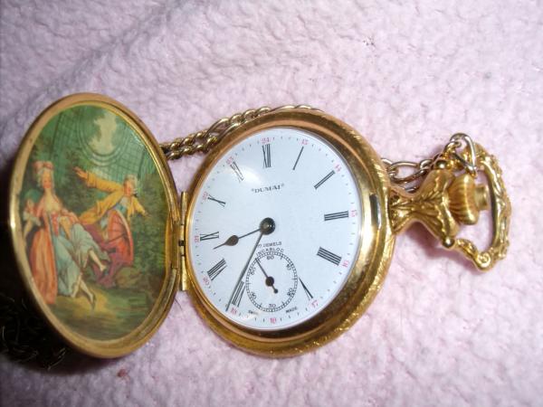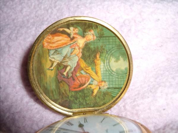 Your Aunt's pocket watch is vintage. It was made in 1960 and is swiss made with a mechanical wind. Here's a link to the website on which you can view the watch. http://www.goantiques.com/category,watches-238.html *Georgina*