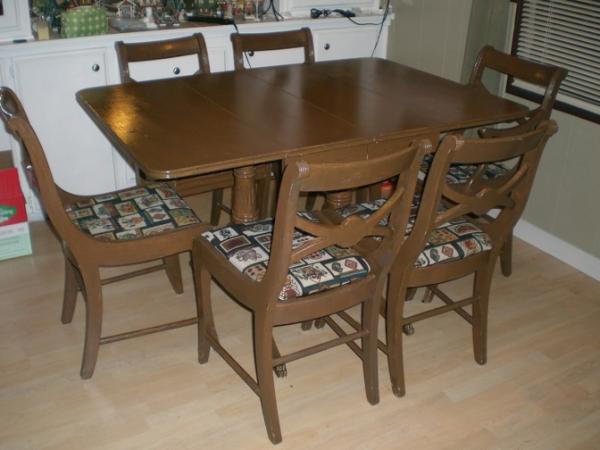 Description The table and chairs are in very good condition.  It was had a paint wash done over the top and we would like to know if its worth re finishing, as well as the overall value of the set
