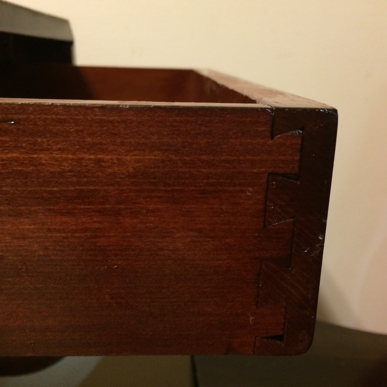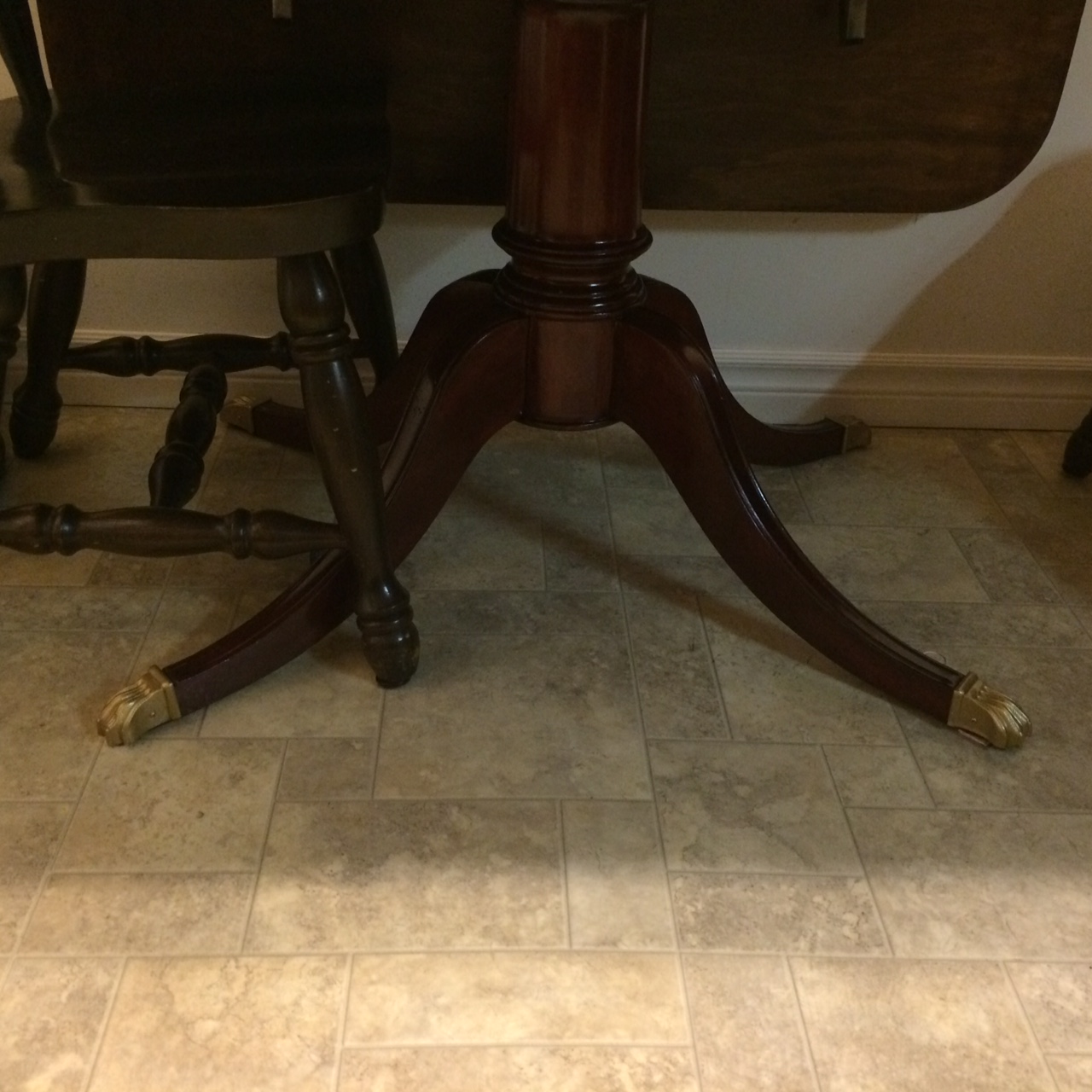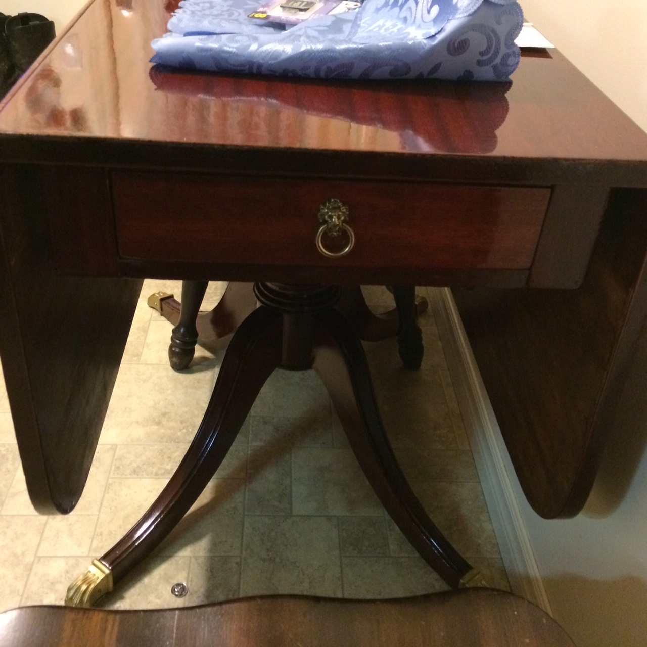 I came across an old drop leaf table that needed some TLC as it had a broken leg and alot of scarring on the table top. I went ahead and had it refinished from a dark brown to a deep, rich, cherry colour. As it was dismantled, there were a couple of markings on the bottom and a unique pull opener on the drawer that warrented this inquiry. The drawer is tongue and groove, and the pull opener is a brass lions head with a ring through its mouth. The legs are dowled and underneath there is the number 97 stamped on bottom of drawer and immbedded into the wood base of the table. It was brought to my attention that it could be an "original" Duncan phyfe. If anyone could help with identifying, I would greatly appreciate it.