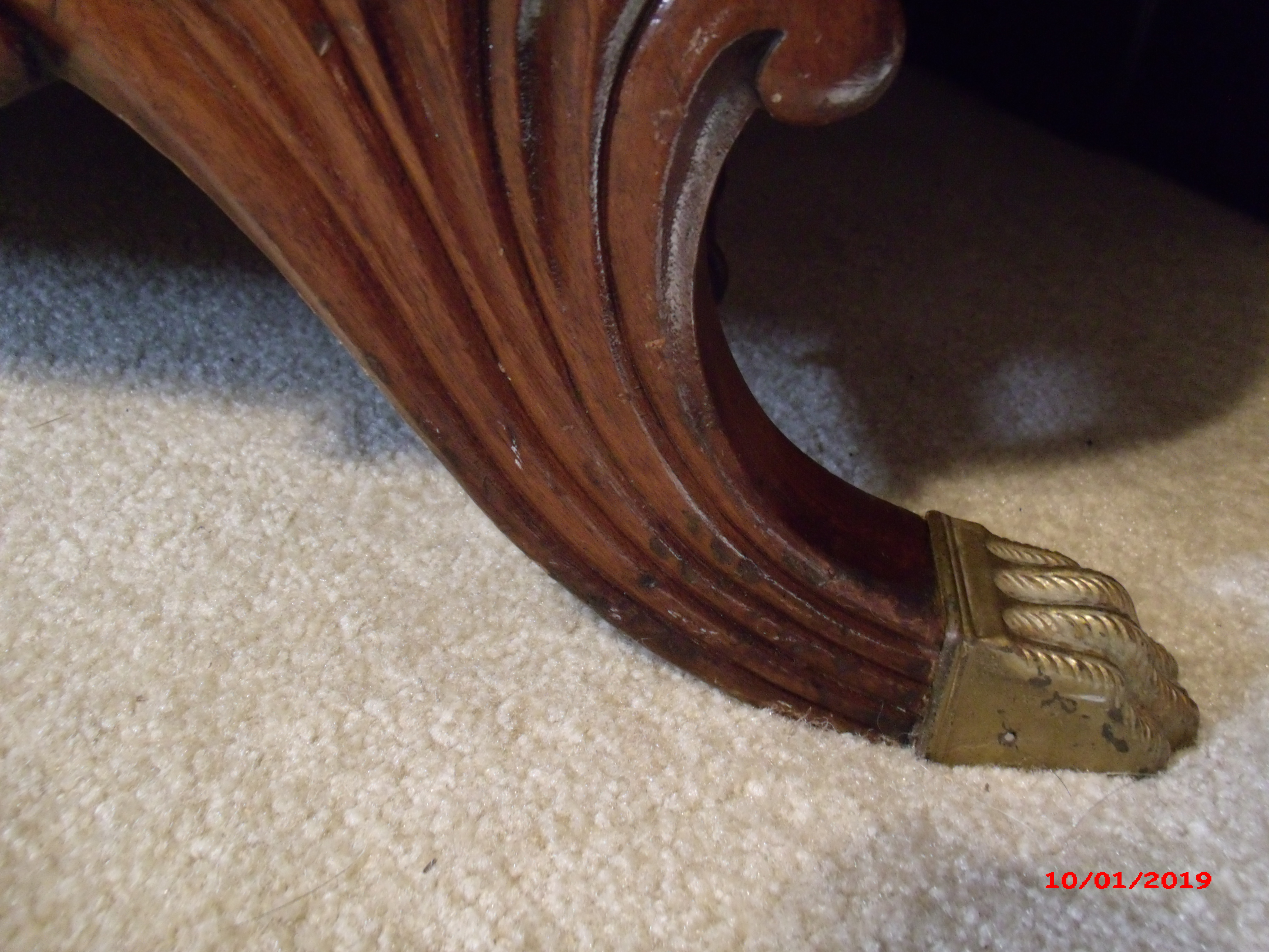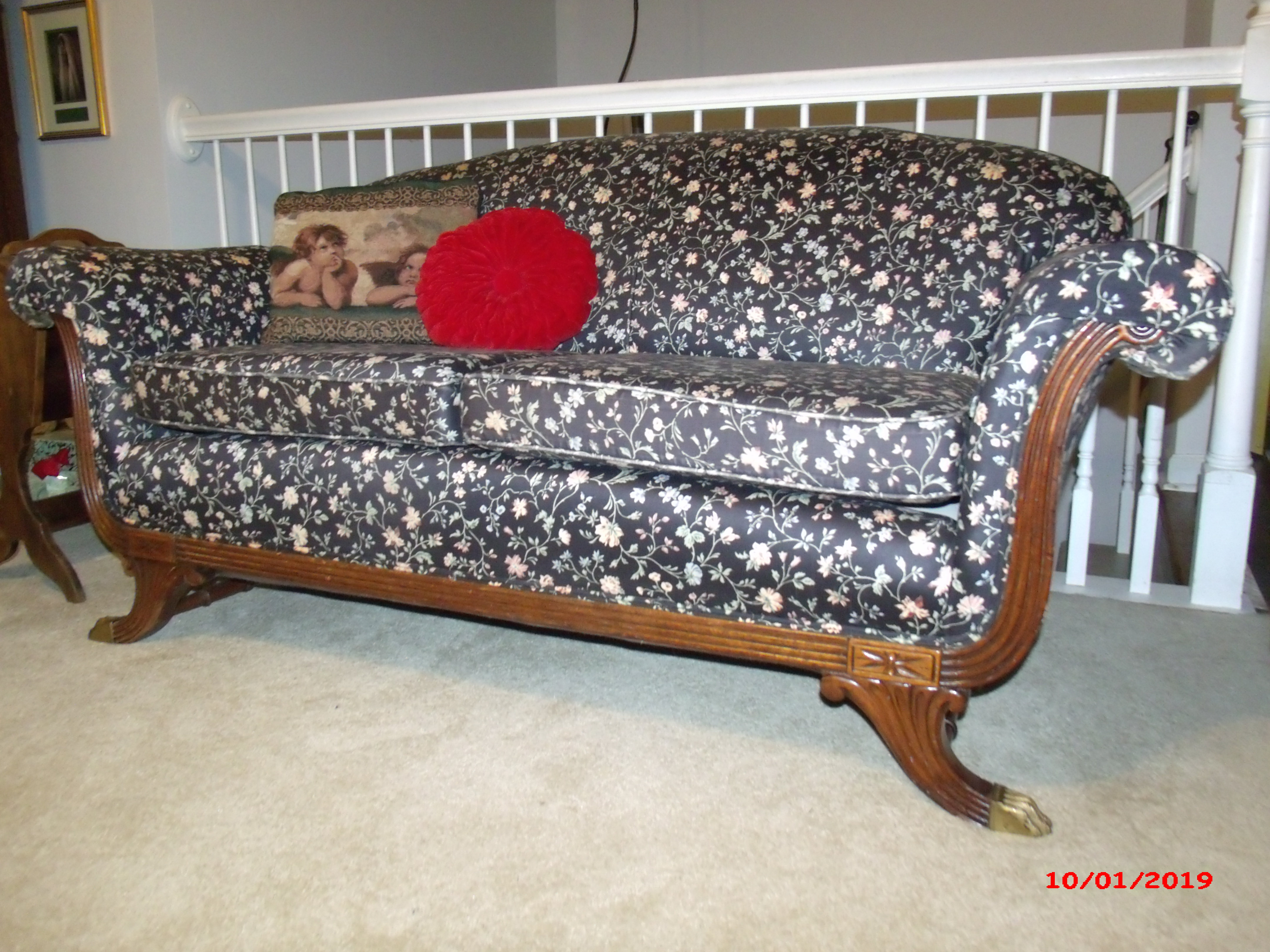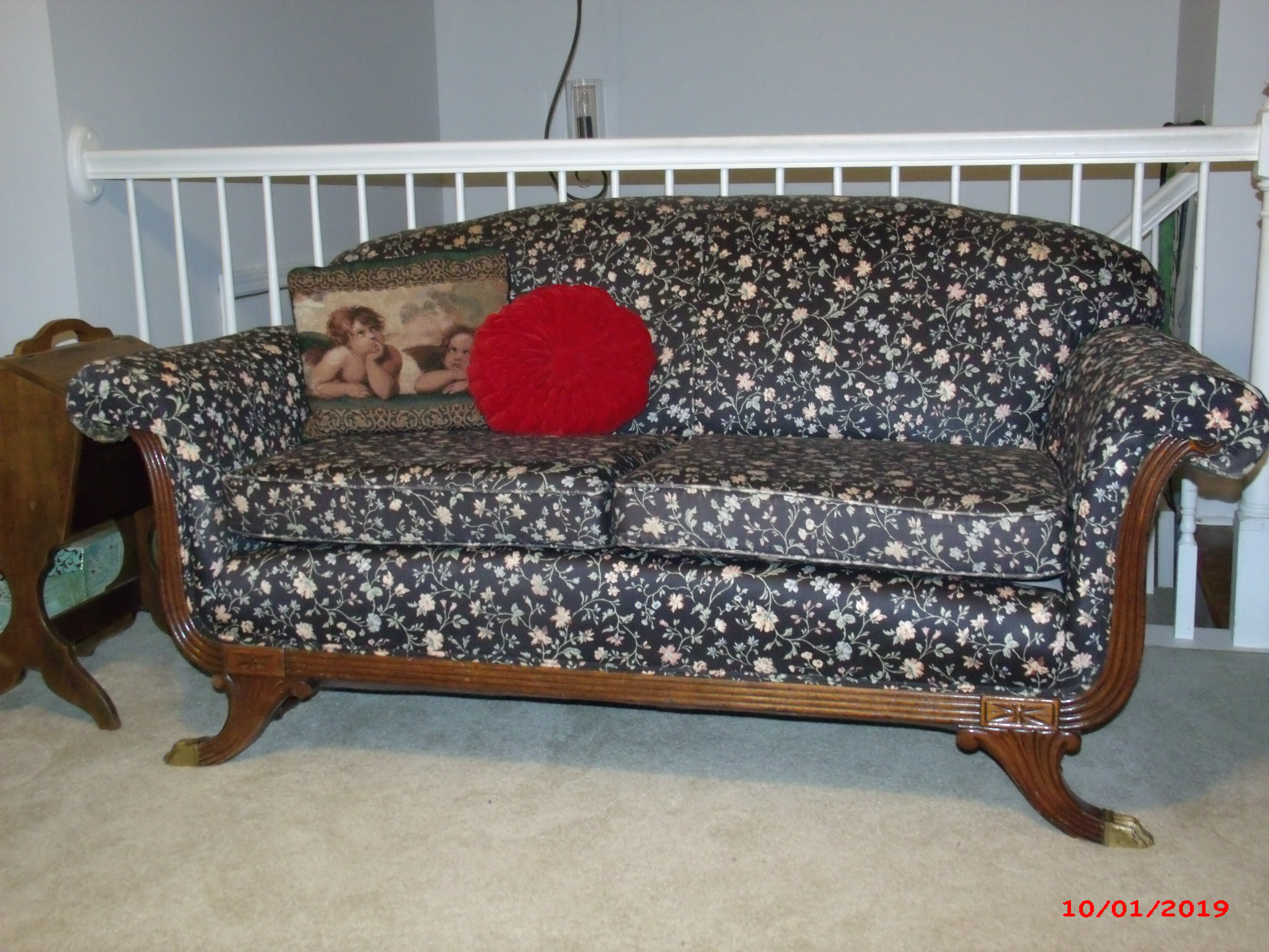 Wish to sell several antique/vintage items & the largest is this Duncan Phyfe Loveseat. I assume it's from the 1940's but have never had it appraised & am uncomfortable setting a price, just in case it's worth more than I know. Apparently two-cushion DF loveseats aren't that easy to find, so I've had difficulty making a comparison. My guess at the value would be around $300-$400, but would like someone to stop me from selling too quickly if it's potentially older than I think.