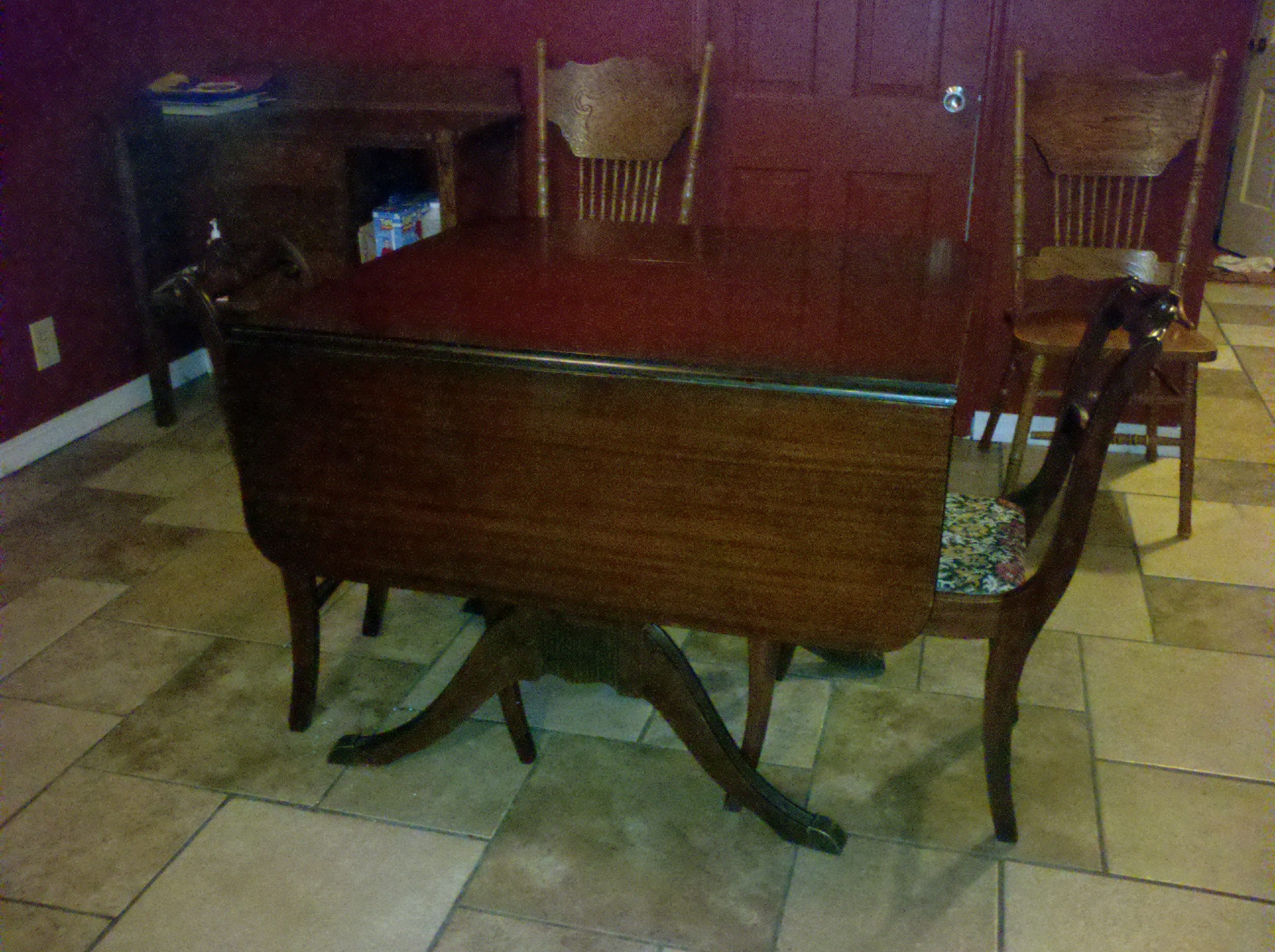 The table is currently at the shop of the carpenter making replacement leaves or I would include diamensions and interior pictures of "patent pending" stamp.