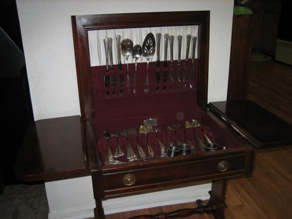 Re: Duncan Phyfe/1881 Wm Rogers silverplate table with drop...