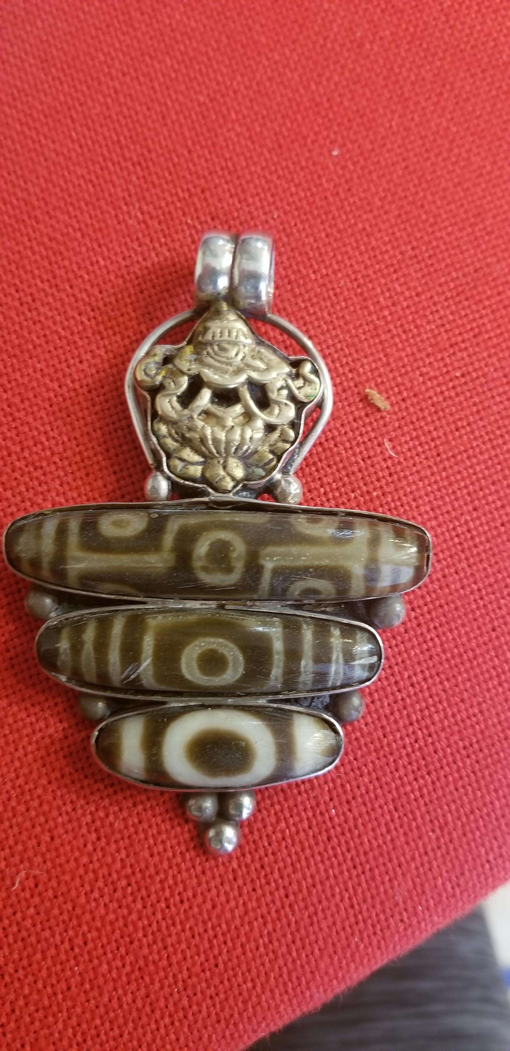 I have a pendent with a 3 dzi beads placed in a separate silver frame. I would like to know if they are real, meaning, care & value. thanks
