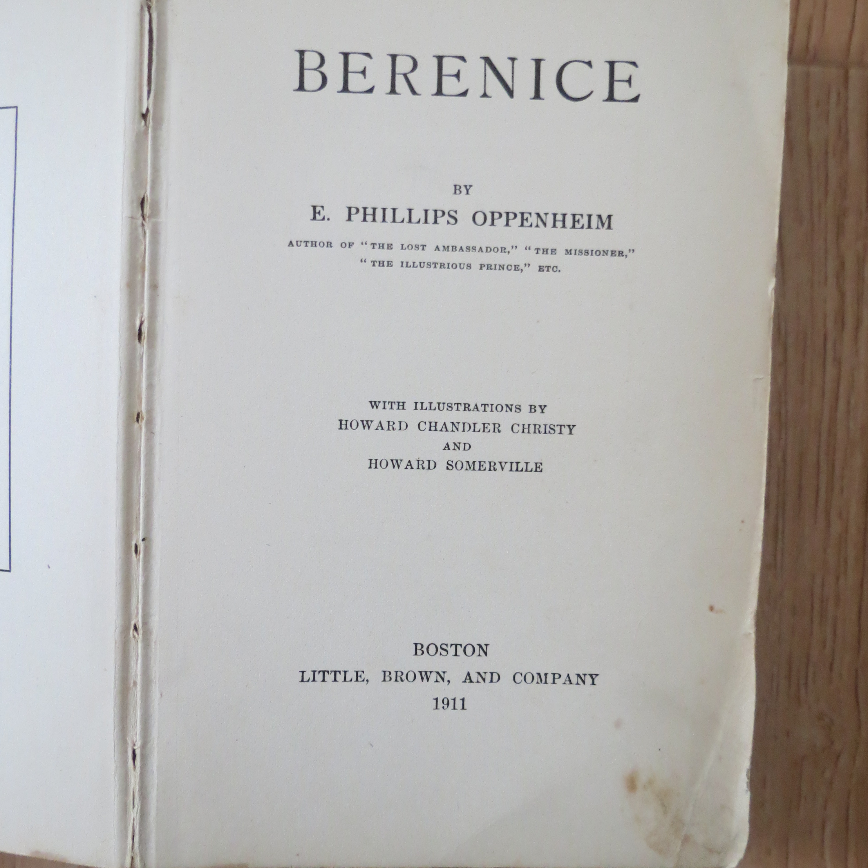 Well, I'm anything but an expert in antiques. I'm quite the opposite, in fact, quite a newbie. But I bought a selection of old books at a book sale and I did an internet search on each one of them. The other 4 I got I could find the approximate worth fairly easily... But upon searching 'Berenice' by E. Phillips Oppenheim No information showed up, really. It's a 1911 book that's seen better days, but it's still a nice book...