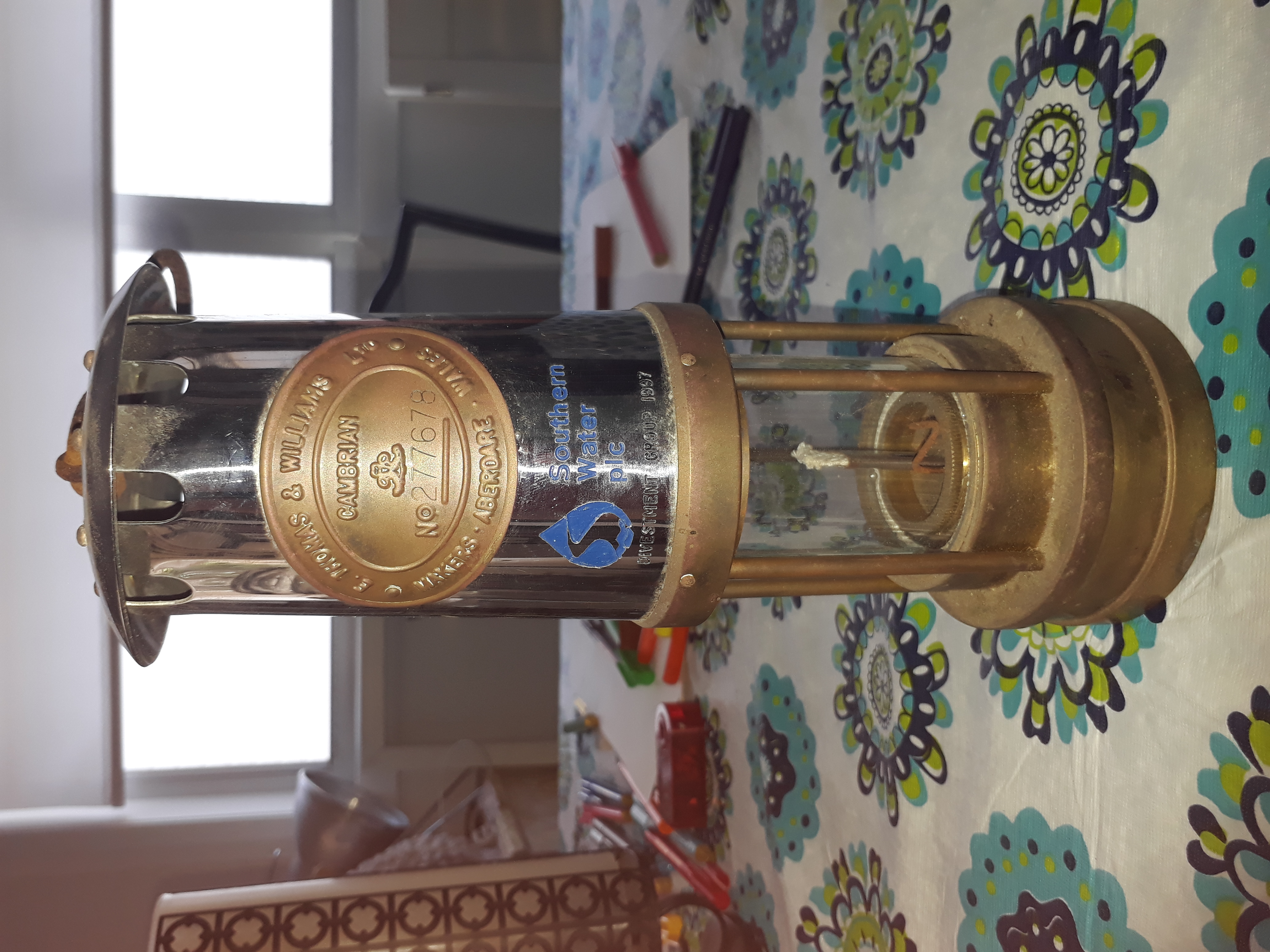 This company has been in existance since 1860 and is a major miners lamp manufacturer.  Its current location is Robertstown Wales as the Aberdare factory was destroyed by fire in 1978. They continue to make approximately 1500 lamps per month. Many of these pieces are made for company recognition of employees, etc. This piece would have been made for the company Southern Water UK. Many of these safety lamps were used for safety in sewer systems and are still used.