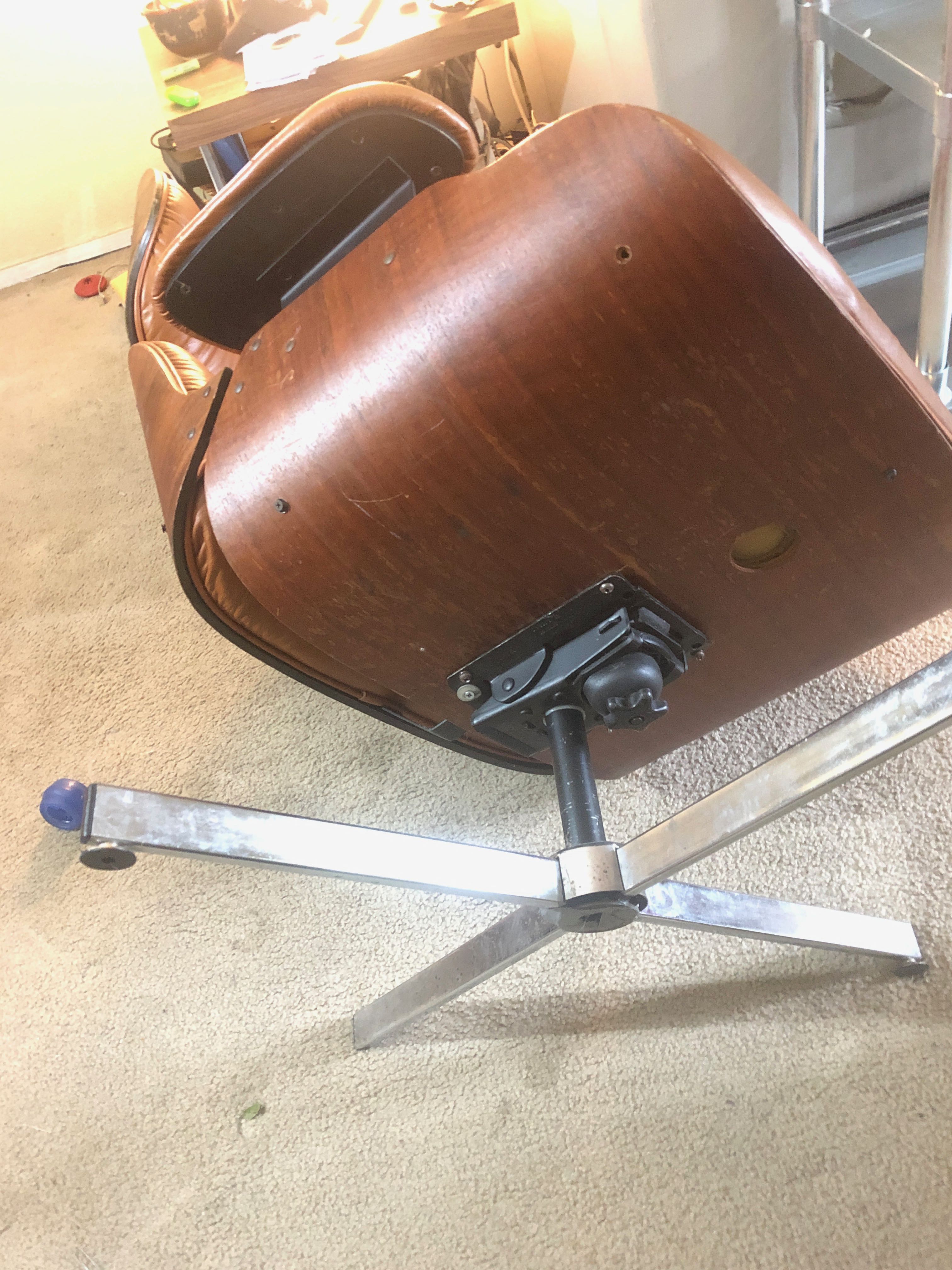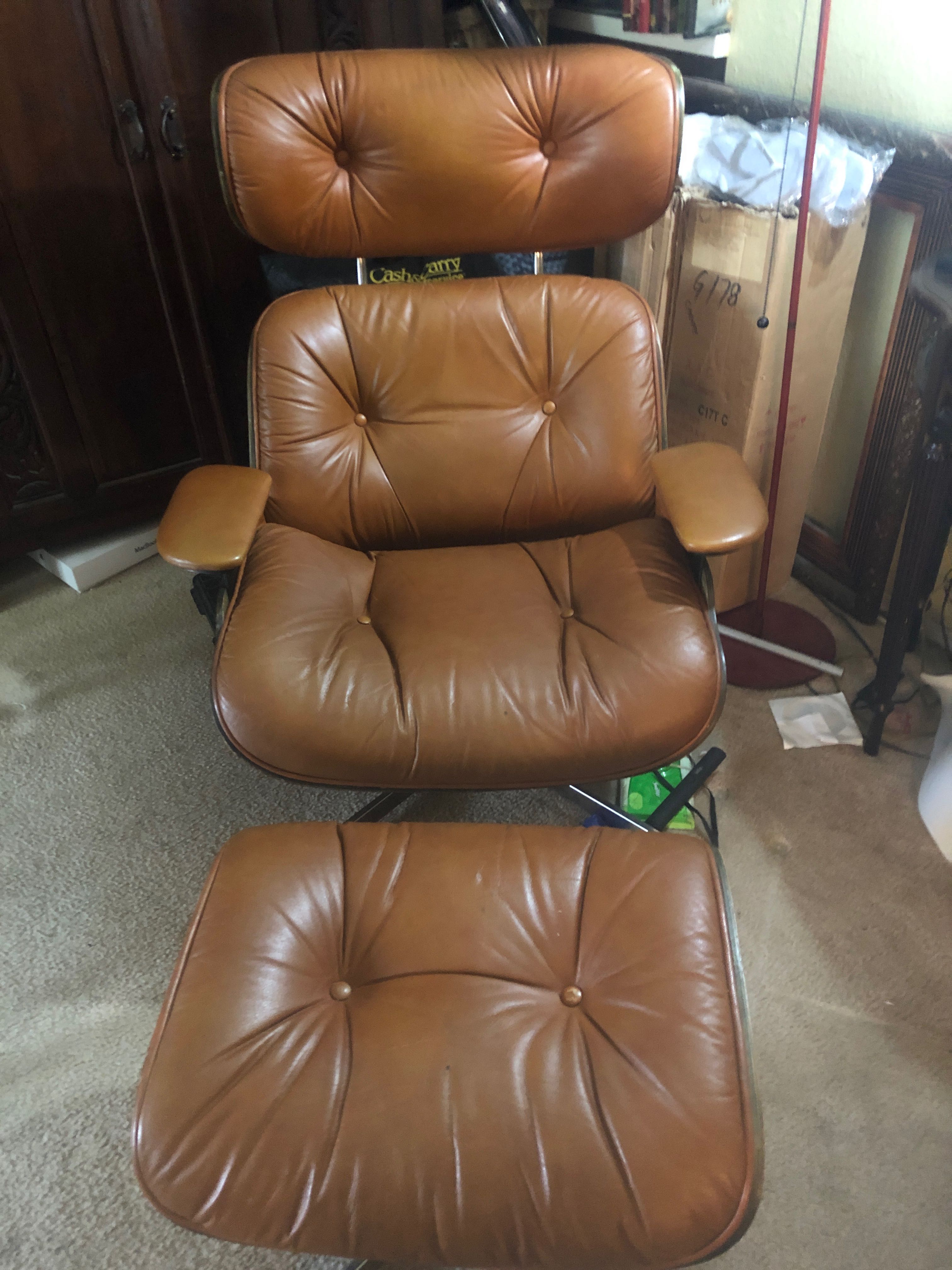 Eames Lounge Chair, Circ a 1970's, with ottoman. The chair had a crack on the bottom, which I reinforced with a steel plate underneath, so it's not visible.
