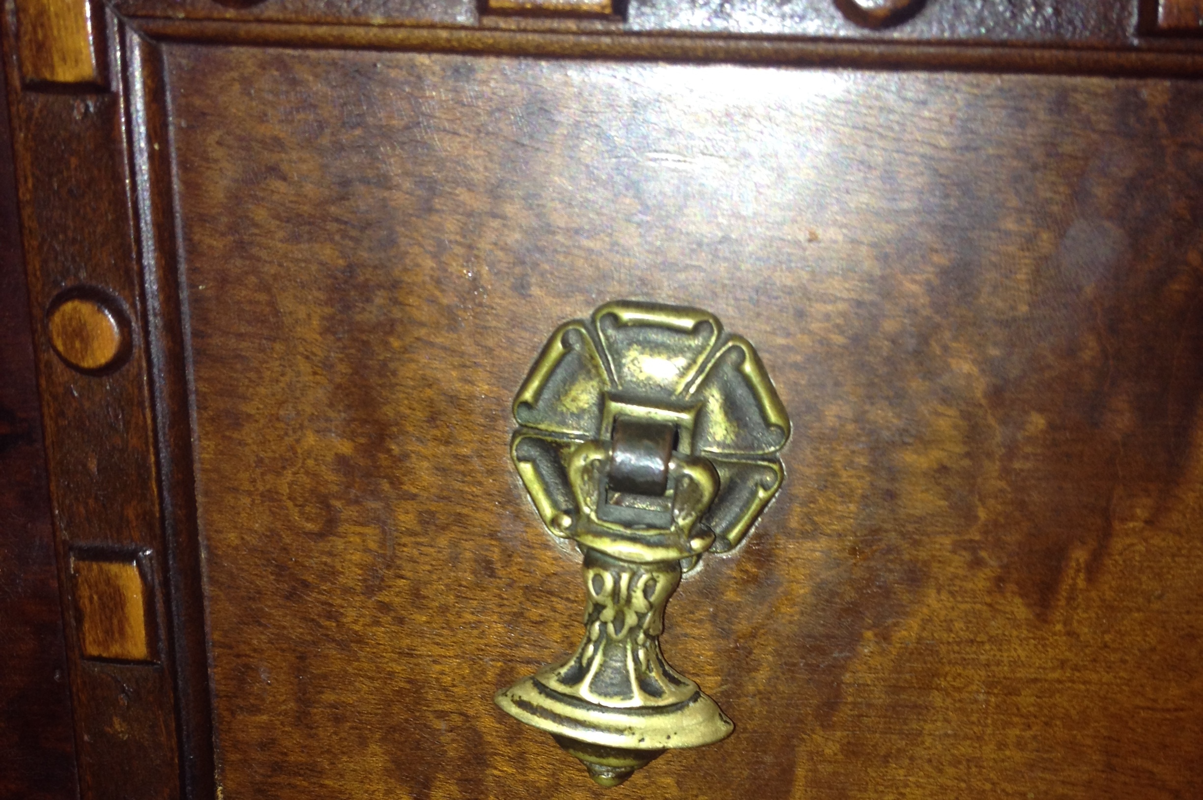 This beautiful antique has one tag on the back indicating the manufacture in Jamestown, NY by Alliance Furniture Co which was in business from 1905-1950s. This piece has stayed in the Western NY area for its entire life. The buffet has a glass top, cabinet door on each front side, 2 long middle silverware/linen drawers, and 2 hidden drawers on the front underside. It stands about 38 inches tall by 60 inches long and 21 inches deep on 5 legs. There is "33" scribbled on the inside of the 2 front drawers as well as a sticker in each drawer, "Special Occasion" with proper drawer location.