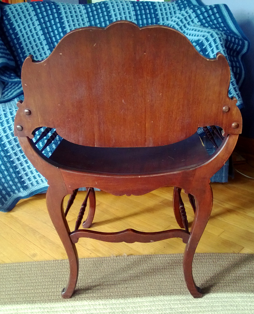 We inherited this chair from my wife's paternal grandmother. The resided in Mercersburg, PA. and went to housekeeping around 1920. We are curious to learn the who/what/where of this piece. FYI - the seat bottom is screwed on from the underside of the chair.