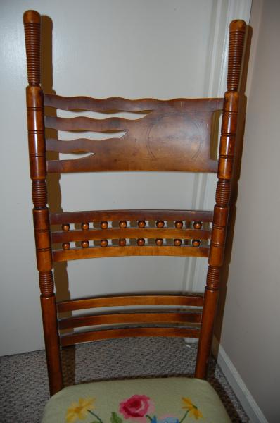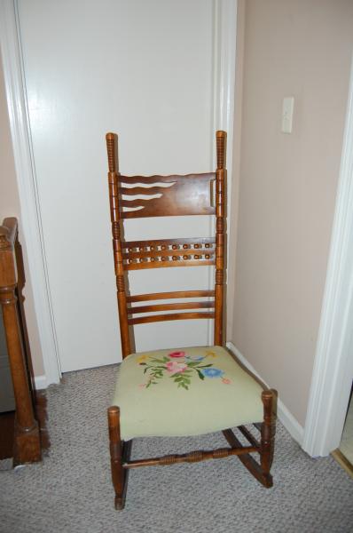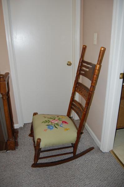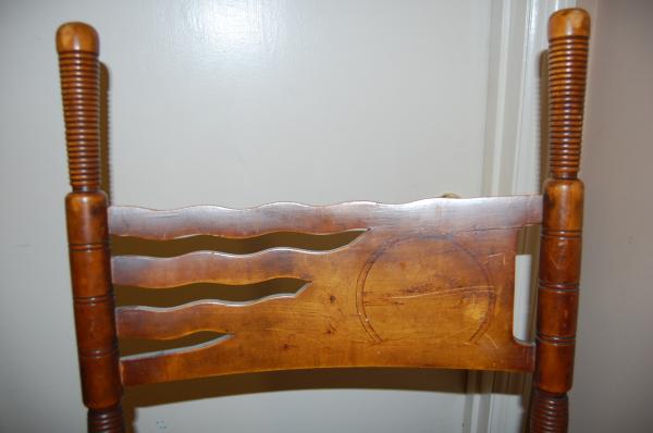 I was rocked in this chair as a baby in the mid 1960's and my mother remembers this chair form her childhood in the 1930's. She says her father remembered it from his childhood in the early 1910's and that it had come from a neighbors home and that they had brought it over from Europe. The last part we question but I would love to know more about this rocker, so if anyone has any ideas about it's origin, who made it, and the etching you would be greatly helping solve a life long mystery