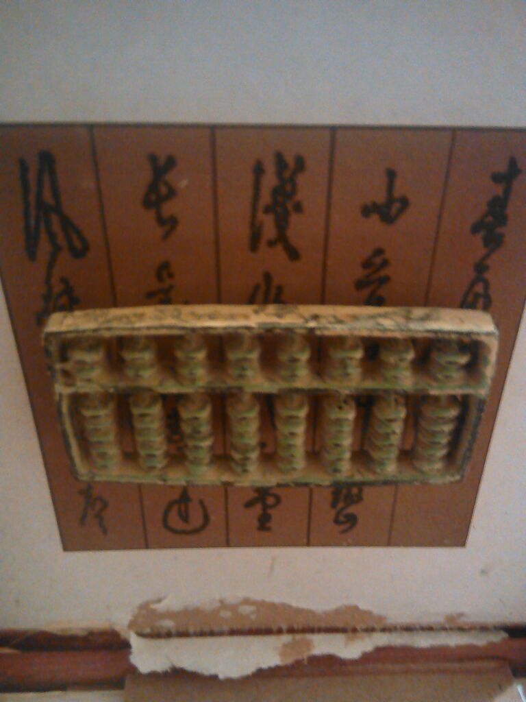 I have the real Chinesenearly Suan pan abacus has wording and figures and 3 red Chinese traditional marks two are I'm red circle and 1 is in rectangle . I don't know what it's meaning but I can't find one similar anywhere only information found is all in books and.myth dating back to dynasties era but most evidence of the time was destroy and this item has been pass down to me by my great great grandma which was pas down from her family generation. I would like to know more about this and its value it has been framed in a square wooden frame with a scroll written in Chinese traditional also in columns going down starting from the far right side of the scroll