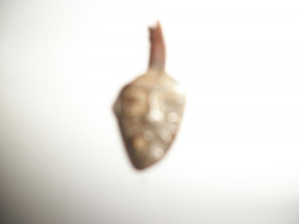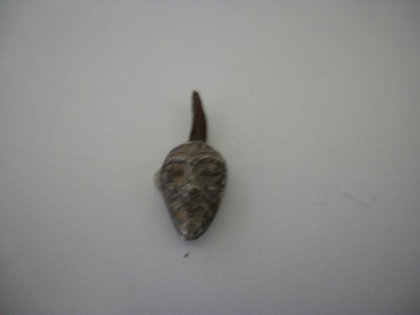 A face of some kind is carved into the metal