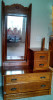 This 3-drawer dresser is a classic example of Eastlake-style furniture, which was popular in the late 19th century (1870s-1890s). The Eastlake movement, led by architect and designer Charles Eastlake, emphasized simple, geometric, and handcrafted designs that contrasted with the heavily ornate Victorian styles of the time. This dresser features hallmark Eastlake characteristics, including incised floral carvings, beveled drawer panels, and brass hardware.