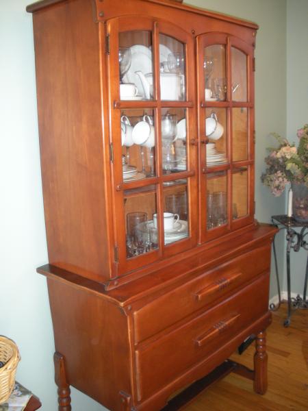 The china cabinet is very nice with two deep drawers to store silverware and or table cloths.