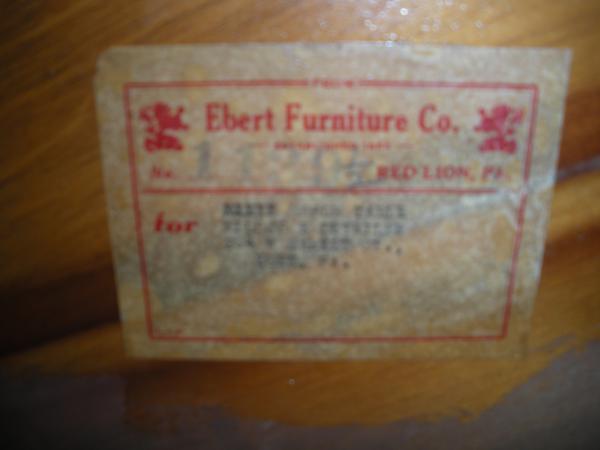 This is an oak dining set from Ebert Furniture in Red Lion Pennsylvania. The company opened in 1854 and closed in 1959. The original owners were from Oberstetten, Germanay; they were cabinet makers and I believe this set may have been manufactured in 1941. (Below is a site dedicated to the history of Ebert Furniture.)
