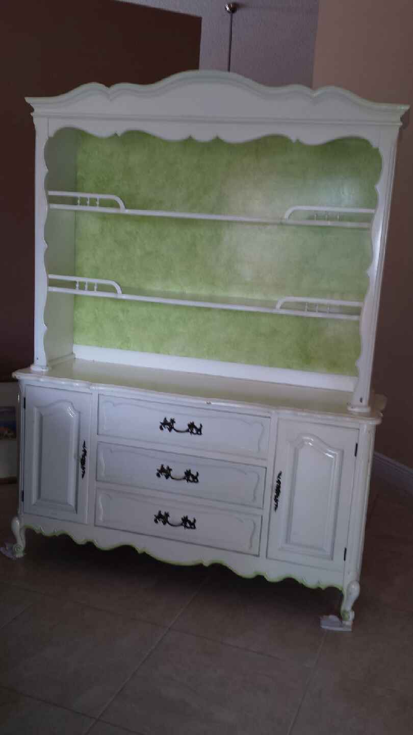 This is a white wood dinning room set and China cabinet built in 1954 built by Ebert furniture. It is on good condition.. it has 6 chairs with an additional leaf to extend the table for 8 people .