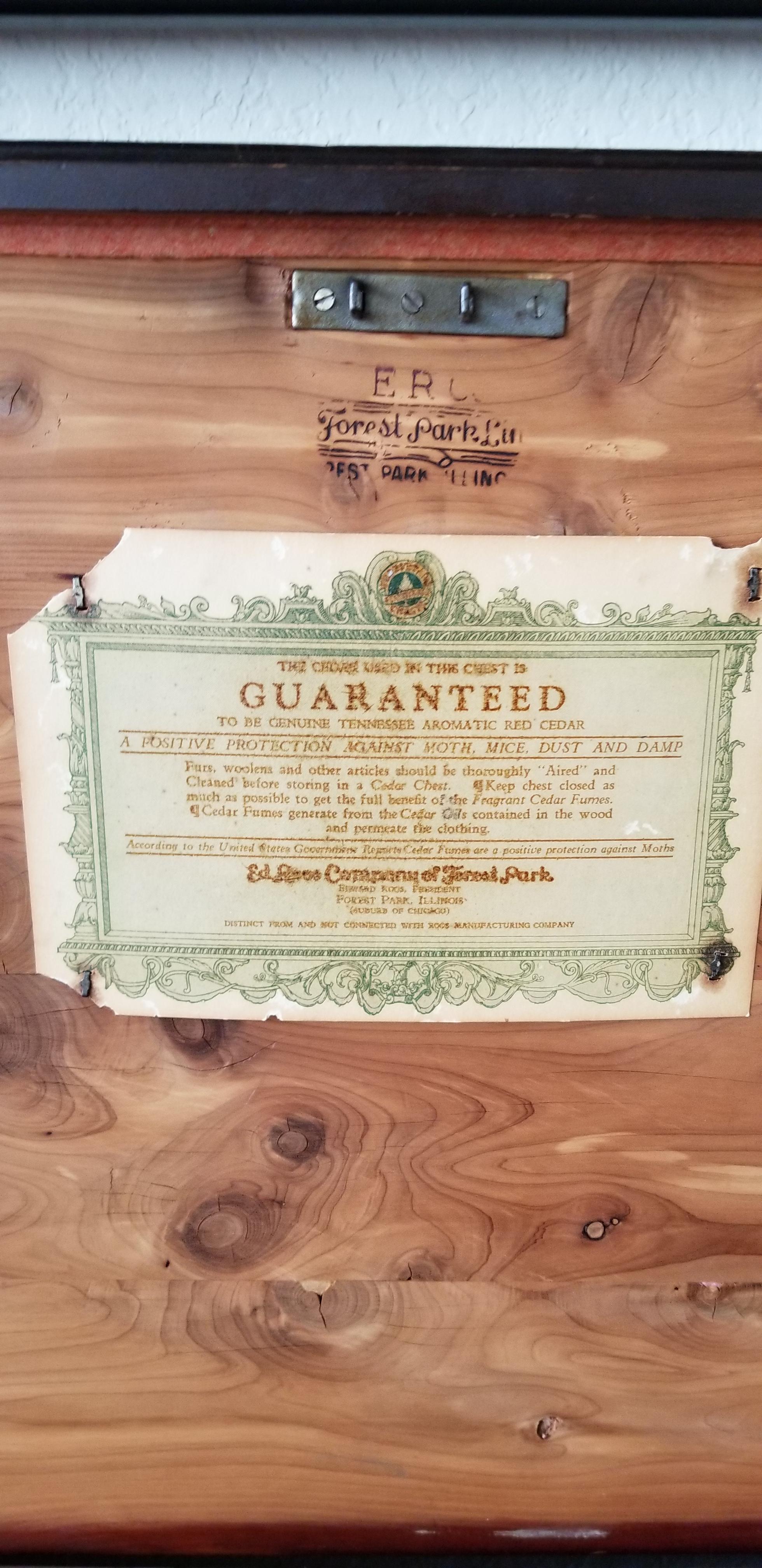 I have a Cedar Chest Made by Ed Roos Company of Forest Park in Illinois.