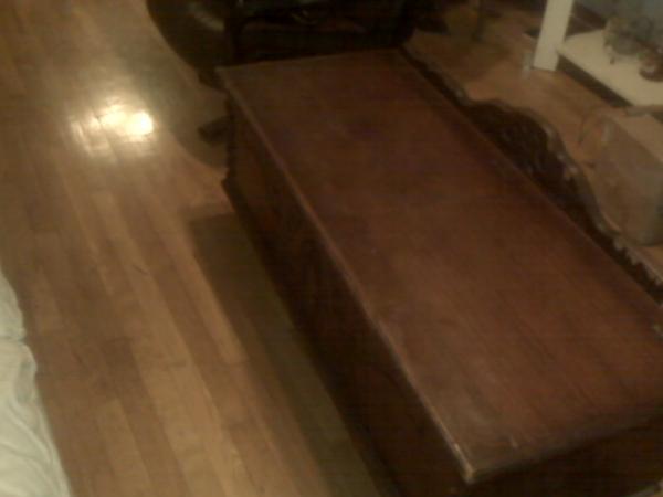 It has carved detailing on the front of what appears to be a lady, but I am not sure, I have included pictures so that you can see what it looks like.