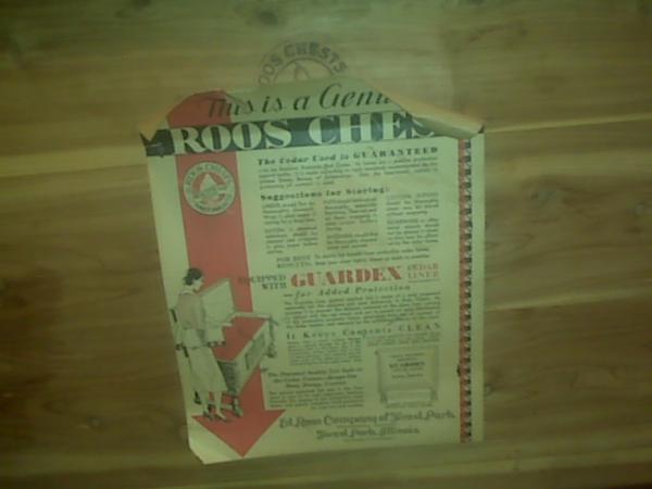 The Roos company was in business from 1916 - 1951, operating in Forest Park Illinois. The company produced these chests in all the popular styles from Colonial to Art Deco. Most furniture in this style was produced during the mid 1920's until World War II. Values vary considerably for these chests, depending on quality of construction, wood type and how close they follow original period designs.Most today sell for under $300.00 .