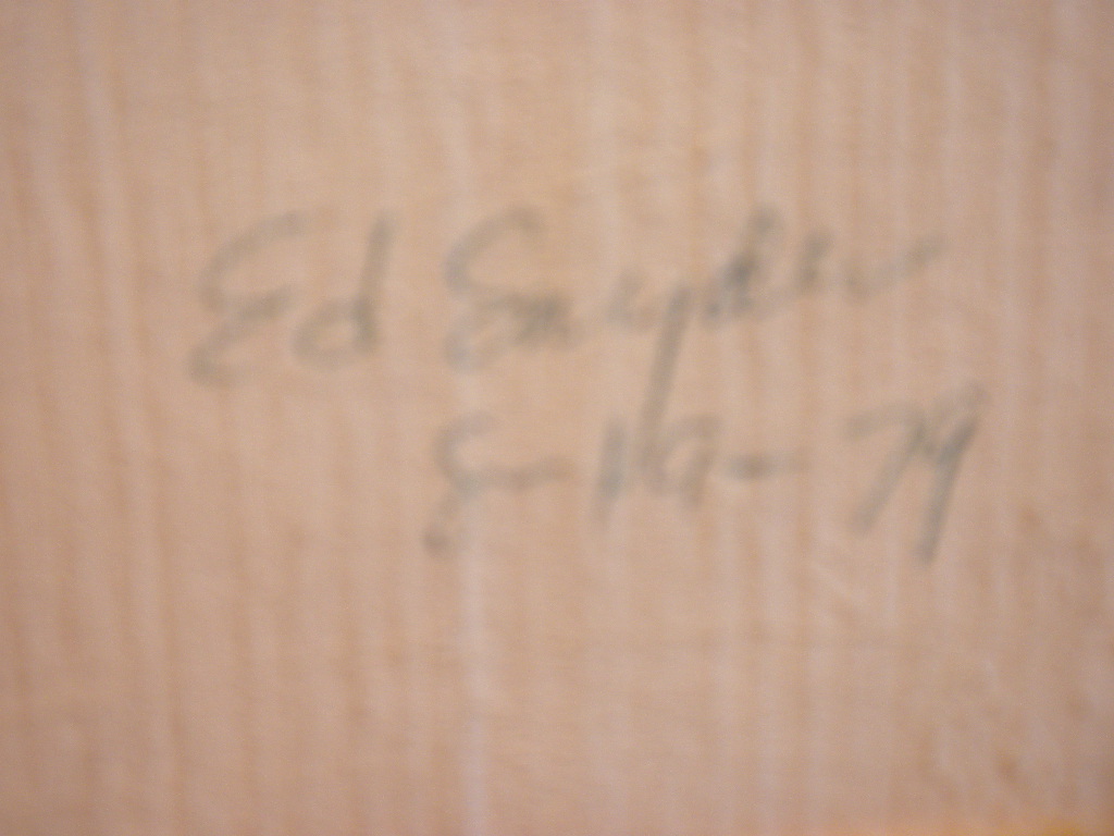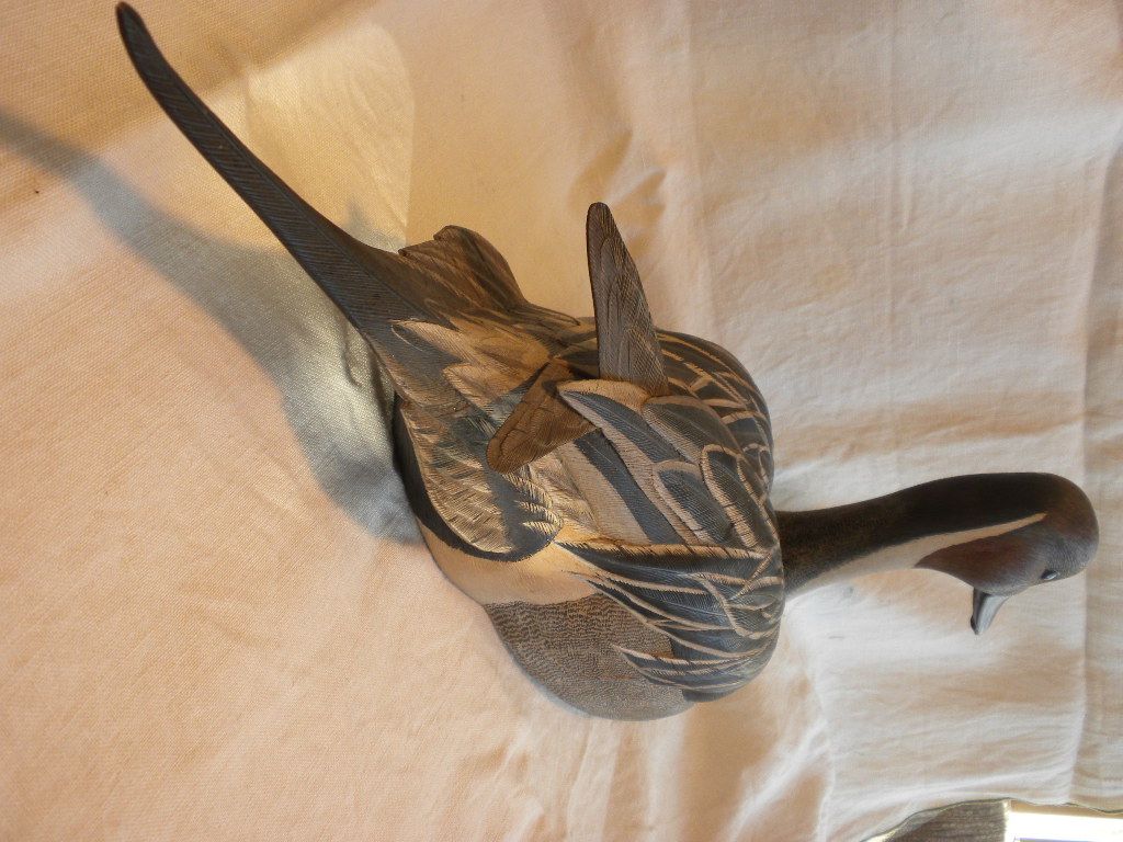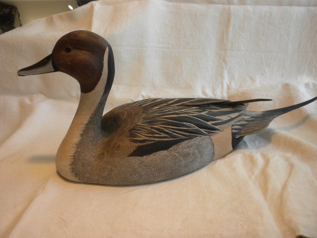 Pintail Decoy dated by Ed Snyder 8/19/79. Has a # written on masking tape 54-cd-0-2. I purchased in 1981 at a decoy show in Monterey Calif. Paper work was to be mailed to me but never recieved it. Suppose to be a show winner. It has been stored in a glass case in a dark room for 30years so is untouched.