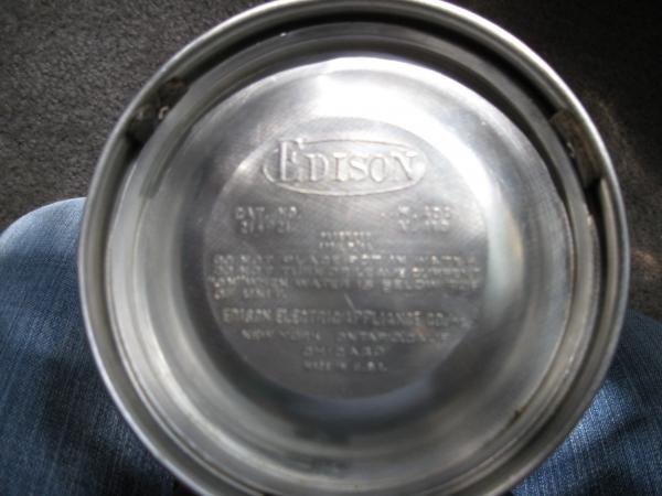 Bottom marked Edison Cat.No.214p21 W.400 V.100