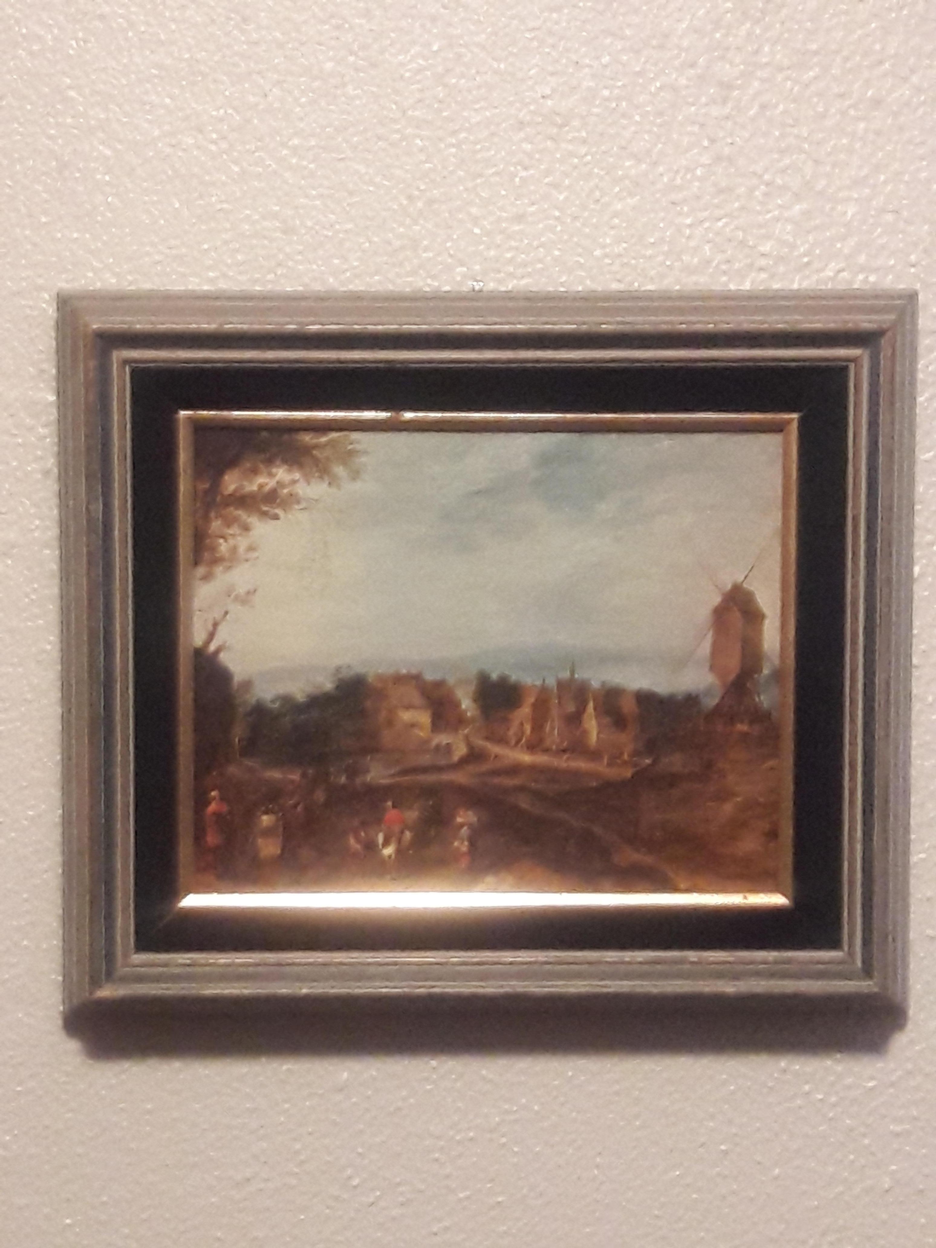 I would call this a miniature vintage picture with a sticker on back that says" Edward art products" it has the # 1012 and says masters of landscapes. The picture itself is in signed but has a old windmill and men on horses. I would say its 12x14. The only pictures I'm finding by this exact name are of birds. Would love for someone to give me some info on this picture. I believe it's rare just cause I can't find it anywhere! In mint condition with a gold metal trim around art then black velvet then the wood frame. This is for sale.