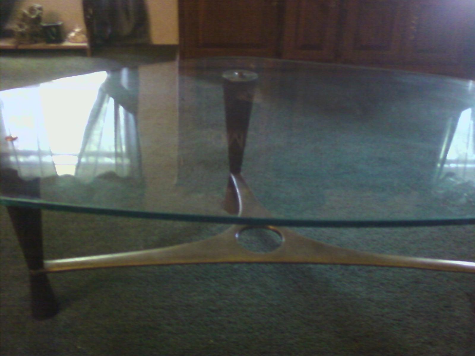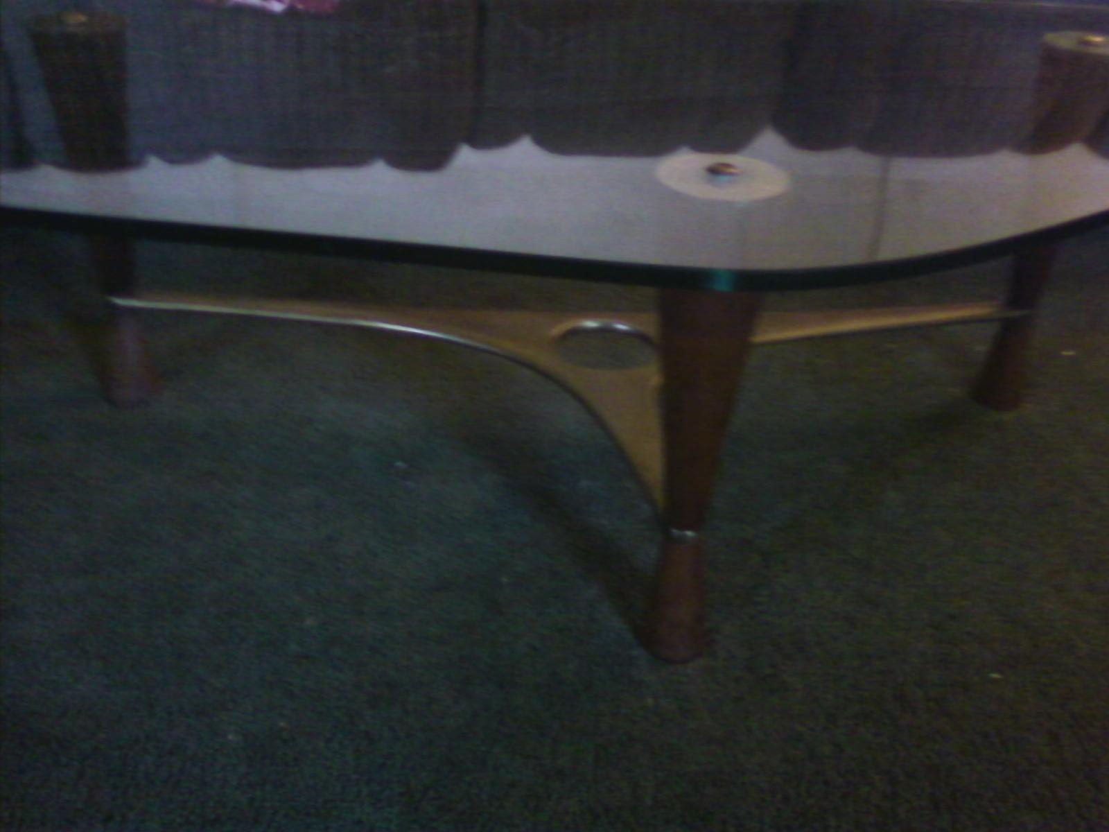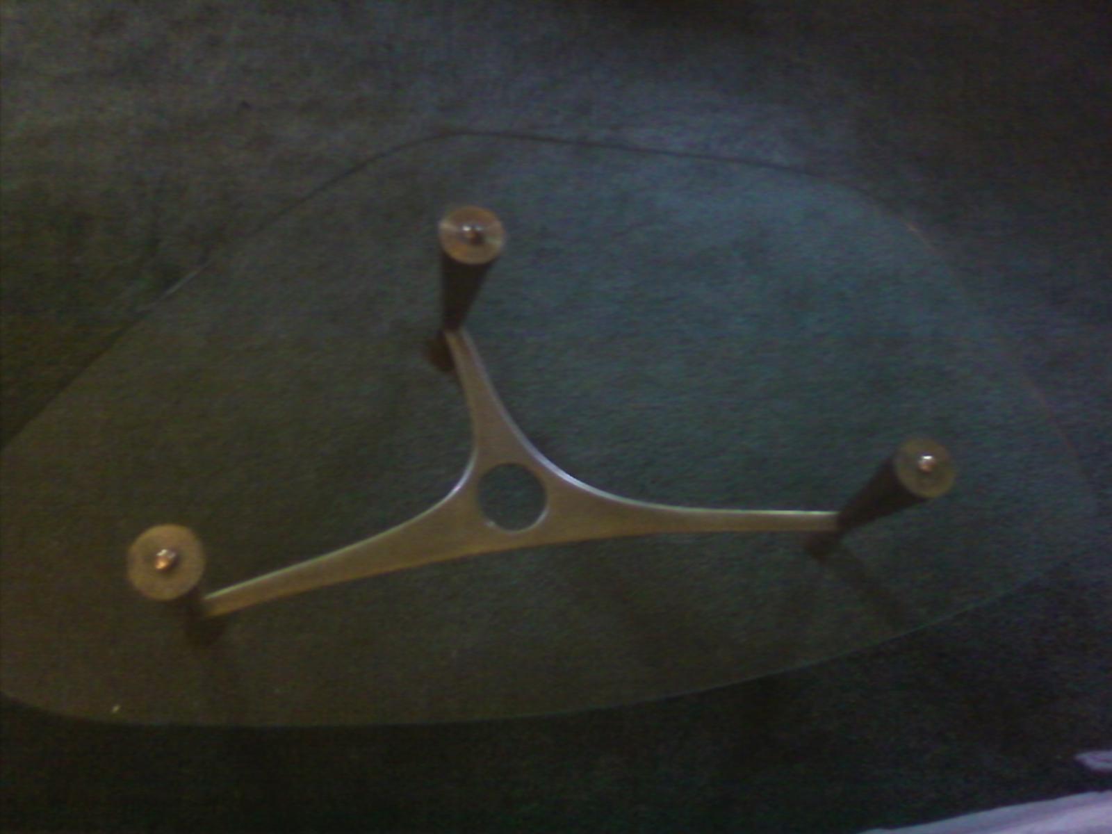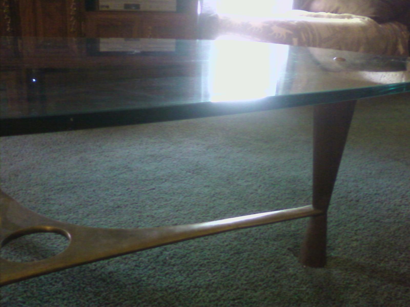 Cocktail table model 5309 by Edward Wormley for Dunbar, Brass base, Tri legs ( wooden ), Glass top