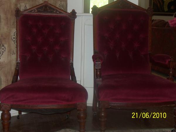set of edwardian or victorian ladies and gents chairs