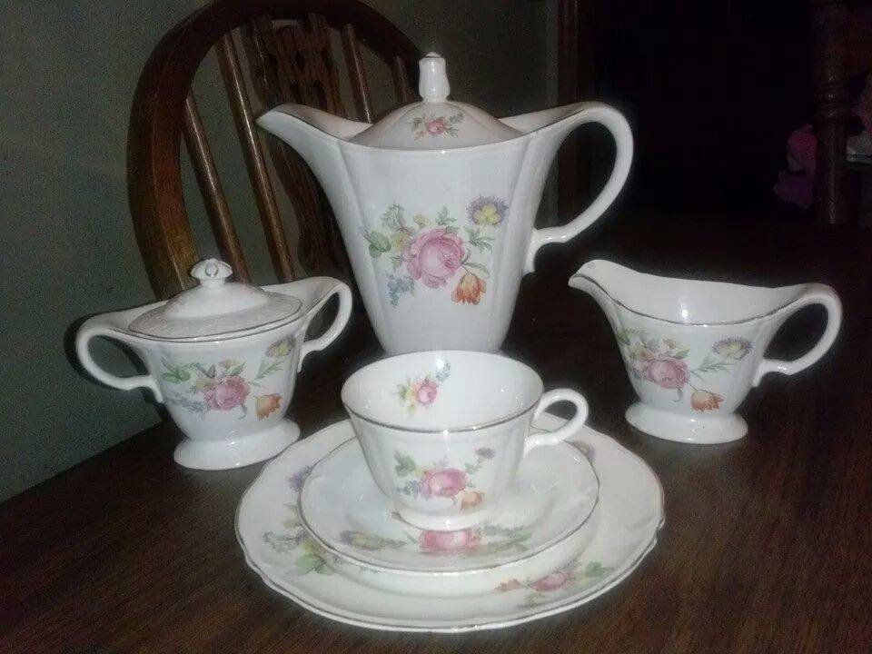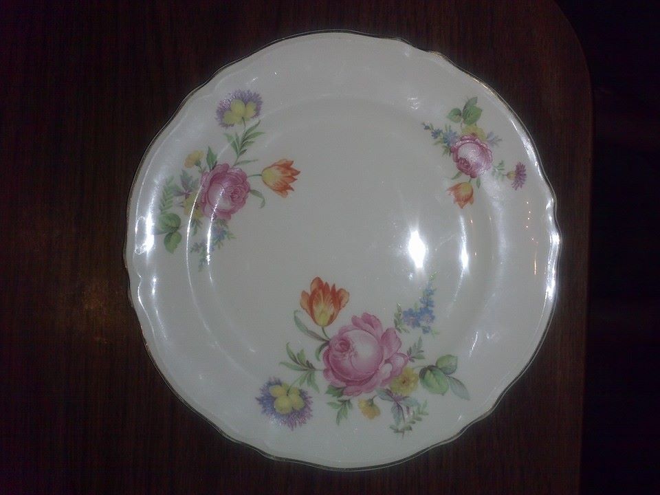 Multifloral Sprays with scalloped edges and gold trim .